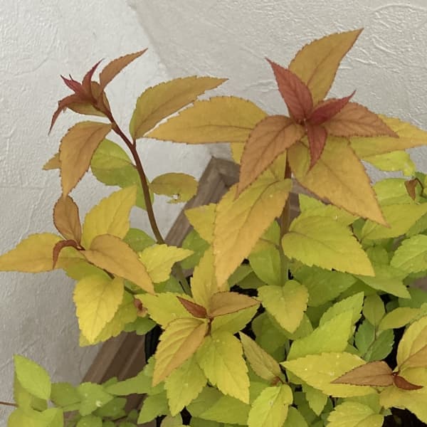 新芽の赤葉と黄金葉が美しい低木花木 庭木の苗/シモツケ:ファイヤーライト4.5号ポットオレンジレッドの鮮やかな新芽が特徴の品種で、初夏にピンクの可愛い花を咲かせます。また秋には紅に染まる紅葉も美しく、四季を通じて見所の多い品種です。寄せ植えや大きな木の根締め、グランドカバーや庭木などに適しています。タイプバラ科シモツケ属の耐寒性落葉低木観賞時期花6〜7月、葉4〜9月、紅葉11月植え付け適期2〜4月、11〜12月樹高60〜80cm日照日向むき栽培方法:日当たりのよい場所に植えてください。肥沃な土を好むので、植え付け時には腐葉土や堆肥をすきこんでください。2月ころにまるく刈り込むと形のよい株になります。枝が混んできたら太い枝を根元から切り取り、間引いて整えてください。2月または6月に挿し木でふやすことができます。4.5号(直径約13.5cm)ポット入り、樹高10-15cm前後の苗です。樹高は入荷時期により変動することがあります。お届け時期により葉がきれいでない状態の場合があります。冬季は落葉の状態となります。写真は成長・開花時のイメージです。シモツケ:ファイヤーライト4.5号ポットの栽培ガイドインテリアにおすすめの、縁起の良い観葉植物