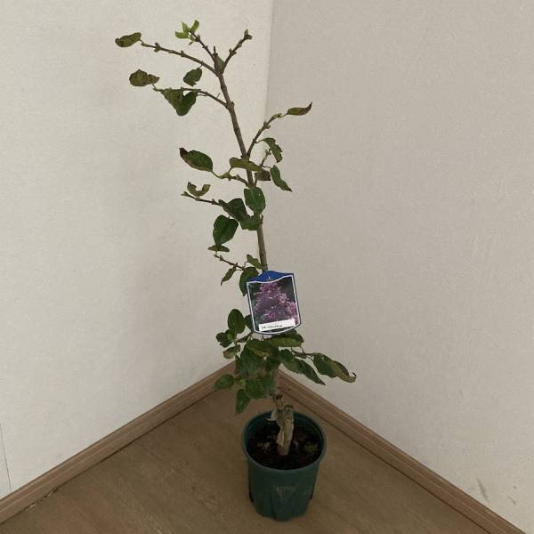 薄紫の大輪花花木 庭木の苗/ライラック:クラークジャイアント6号ポット別名リラと呼ばれ枝先に円錐状の小花をたくさん付け、周囲に芳香を漂わせます。庭木としても楽しめ、鉢植えで小振りに育てることもできます。耐寒性に非常に優れ、北国の代表的な花木です。昔は暑さに弱かったのですが、最近の園芸種は耐暑性にも優れていますので、沖縄を除くほぼ全国で栽培可能です。クラークジャイアントは薄い青味がかった紫色の大きな花で良い香りがします。樹性も強く良く育ちます。学名:Syringa × hyacinthiflora 'Clark's Giant'タイプ:モクセイ科ハシドイ属の耐寒性落葉小高木樹高:2〜4m植栽適地:日本全国(沖縄を除く)植え付け適期:10月〜4月半ば開花期:暖地では4月半ば〜5月中旬、寒地では5月半ば〜7月初旬日照:日向むき栽培方法:日当たりの良い場所で、なるべく涼しく、水はけがよく養分豊富な土を好みます。花はほとんど枝先につきますので、暖地ではなるべく剪定しないほうが良いでしょう。若木のうちから花芽のない枝や伸びすぎた枝を落とす程度にして樹形を整えます。7〜8月に花芽分化しますので、この時期以降は枝先を切らないようにしてください。また、一般にイボタ台につぎ木されるので、植えつけ後、根元から萌芽する台芽は取り除くようにして下さい。12〜2月に有機肥料を寒肥として根元に施します。鉢植えの場合は、開花後にも根元に緩効性肥料を施してください。暖地では6〜8月に幹にカミキリムシの幼虫が入ることがありますので、月に1回、アセフェート粒剤などを根元にまいて防除します。お届けする苗は6号(直径18cm)ポット植え、樹高約60〜80cm前後です。樹高につきましては入荷時期により変動することがあります。お届け時期により開花後となる場合がございますので、ご了承ください。写真は成長・開花時のイメージです。※夏季は高温の為、若干葉焼けしていたり、葉が少ない状態でのお届けとなることがございます。苗についている産地の商品ラベルは一般的な品種のものを用いている場合があります。