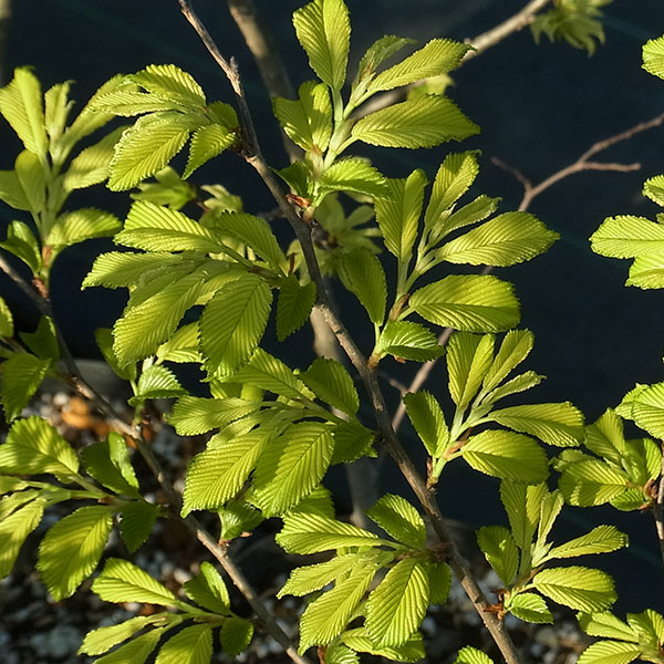 春のクリーム色の新芽が絶品 樹木の苗木 接ぎ木の匠・矢澤ナーセリー花木 庭木の苗/[送料無料]ニレ:ユウゼンケヤキ6号ポットユウゼンケヤキはニレ科の耐寒性落葉広葉樹、アキニレやハルニレの品種、またオヒョウの園芸種など諸説ありますがはっきりしたことは分かっておりません。樹形はケヤキに似ていますが、繊細な印象で、葉が小さく光沢があります。ユウゼンケヤキは新芽が黄金色で、その後外斑が現れます。大きくなりますので、庭園樹としておすすめです。この商品は成長すると春にハルニレのような花が咲くタイプになります。タイプ:ニレ科ニレ属の耐寒性落葉小高木植栽適地:東北地方以南樹高:3〜7m開花時期:9月日照:日向むき栽培方法:大気汚染に強く、土質を選びませんが、成長はおそめです。耐寒性、耐暑性とも強く、また潮風にもよく耐え、強健です。6号(直径18cm)ポット植え、樹高約50〜70cmです。お届け後は根を乾かさないように管理し、なるべく早く植えつけてください。写真は成長時のイメージです。■この商品は、下記サービスについてはお受けできません。・日曜祝日指定・時間帯指定・メッセージカードの添付・代金引換決済■お届け地域について ・北海道へのお届けは、追加送料(実費)をいただく場合があります。沖縄・離島へのお届けはできません。 [送料無料]ニレ:ユウゼンケヤキ6号ポットの栽培ガイド接木の匠・矢澤ナーセリーの接木樹木特集