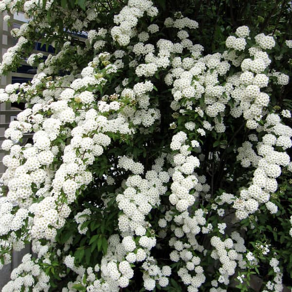 一重白花・庭木や鉢植えに!小手毬花木 庭木の苗/コデマリ6号ポットコデマリは4月下旬から5月頃に白い小さな花が20ほど集まった手毬のような花を咲かせる落葉低木です。自然樹形で株立ち状になります。花をいっぱい付けた細い枝は大きくゆるやかに垂れ下がり、開花期には全体が真っ白にみえるほど。葉は秋に紅葉します。成長は早く、萌芽・復元性があるので、剪定にも強い品種です。庭木、生垣としてご利用ください。タイプ:バラ科シモツケ属の耐寒性落葉低木開花期:4月下旬〜5月樹高:1〜1.5m植付け適期:2〜3月栽培適地:日本全国日照:日向むき栽培方法:日当たりのよい場所に腐葉土や堆肥を施して植え付けてください。直立し、枝先がやわらかく垂れる姿に趣きがあるので、強い剪定はせずに枝を伸ばして楽しんでください。株の大きさを抑えるために剪定をする場合は、2〜3月または花後の6月が適期です。古くなった茎や込みすぎた茎を間引くように、茎の根元から切り取ります。枝の途中から切ると樹形が乱れるので注意してください。植え替えや植付け、株分けは2〜3月が適期です。移植は容易です。5〜6月頃にユキヤナギアブラムシやうどんこ病が発生しやすいので、オルトラン等で防除してください。茎葉が込みすぎないよう適度に間引くと発生をおさえることができます。お届けする苗は6号(直径18cm)ポット入り、樹高約40〜70cmです。樹高は多少変動します。夏〜秋のお届け時は葉の状態がきれいでない場合があります。冬季は落葉状態でのお届けです。写真は開花時のイメージです。※本来は秋に落葉する品種ですが、苗木のうちは葉が少なく、昨今の猛暑の影響もあるため、初夏に葉焼けや斑点がある状態〜落葉した状態となります。お届け時に葉が無い場合があります。コデマリ6号ポットの栽培ガイドインテリアにおすすめの、縁起の良い観葉植物