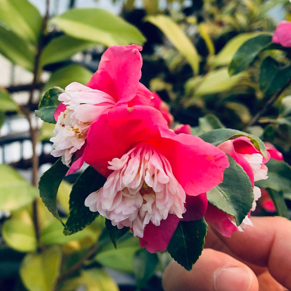 11月〜4月開花 アメリカ生まれの極小輪唐子咲き花木 庭木の苗/ツバキ(椿):センテッドジェム4号ポットセンテッドジェムはアメリカ生まれの品種で、ピンク色の極小輪の唐子咲き。直径2cmほどの小さな花が細い枝に咲く様子は、他の椿とは異なる可憐な雰囲気があります。卜伴(ボクハン)とヒメサザンカの交配種です。タイプ:ツバキ科ツバキ属の耐寒性常緑小高木樹高:2〜3m開花期:11〜4月植え付け適期:9〜10月、2〜4月栽培適地:東北地方以南日照:日向または半日陰(開花するようになると日向のほうが適しています)栽培方法日当たり、水はけの良い場所を好みます。酸性土を好むので、植え付けの際に植え穴にピートモス、腐葉土またはブルーベリー栽培用土などを混ぜ込んでください。2〜3月に寒肥として、油粕や骨粉を根元に施します。剪定は花後すぐに行います。葉芽の先に花がつくので、葉芽を残すように間引き剪定をします。夏に花芽が分化するので、夏以降は枝を切らないようにしてください。ツバキには4月と7月頃にチャドクガが発生しやすいので、殺虫剤で駆除してください。4.5号(直径13.5cm)ポット入りです。樹高は多少変動します。写真は開花時のイメージです。お届け時期により開花後となる場合があります。