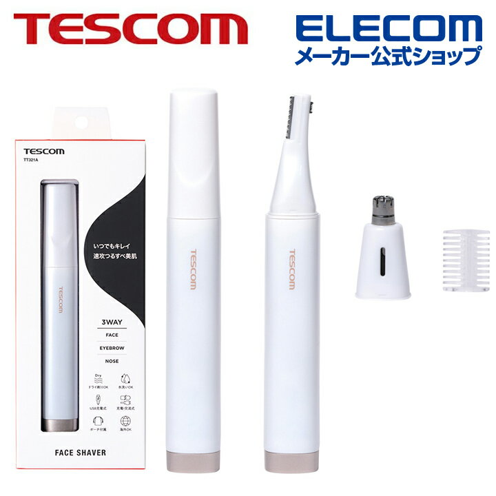 ■眉・鼻・顔のうぶ毛をこれ1本でケア。外出先でもお手入れできるコンパクトなフェイスシェーバーです。USB Type-C(TM)対応で充電しながら使えるので、急なお出かけ前でもさっと整えられます。■眉・鼻・顔のうぶ毛をこれ1本でケア。日常のお手入れで、メイクノリのいいなめらかな肌に整えます。■持ち物に馴染むミニマルデザインなので、人目を気にせずさりげなく取り出せて、シーンを選ばず使えます。落ち着いたトーンと上品なマット質感で、手元に自然と溶け込むデザインに仕上げました。■顔全体をケアできる両面ブレードを採用。おでこや口まわり、フェイスラインなどの細くてやわらかいうぶ毛も、根元からしっかりシェービングできます。■※乾いた肌にお使いください。石けん剃りはできません。■眉の長さや高さを整えられる2mm/6mmの2段階コームが付いているので、バランスよくきれいに仕上げられます。■小さめの鼻にも使いやすい直径7.75mmのスリムヘッドで、小鼻のキワまできちんとケアできます。■USB Type-C(TM)対応で、モバイルバッテリーなどから手軽に充電可能。充電しながら使えるので、お仕事帰りの急なお出かけにもすぐにフェイスケアができます。■約1.5時間のスピード充電なので、朝に充電してすぐに使えます。フル充電で約1.5時間使えて、外出先への持ち運びも充電切れを気にすることがなく安心です。■持ち運びやすい軽くてコンパクトな設計。専用ポーチ付きなのでバッグの中で見つけやすく、旅先や外出先への持ち運びに便利です。■メイクの上からでもシェービングできるので、外出先や急な予定の前でもさっと整えられます。■内刃も取り外せるヘッドで、お手入れも簡単。使った後はヘッドを水洗いできて、いつも清潔に保てます。■※本体は水洗いできません。アタッチメントは45℃までのお湯で洗浄可能です。■カラーはクリーンなホワイト、ニュートラルなグレージュの2色展開です。■※USB Type-C and USB-C are trademarks of USB Implementers Forum.■電源方式:充電・交流式■電源:5V1.0A■消費電力:5W■充電時間:約1.5時間■使用時間:約1.5時間■使用電池:リチウムイオン電池■スイッチ:電源スイッチ:ON/OFF■充電残量表示:○■外形寸法:幅約21.9mm×奥行約20mm×高さ約152.5mm(キャップを含む)■質量:約60g(キャップ・フェイス用刃を含む)■主材料:ポリカーボネート■カラー:ホワイト■コネクター形状:USB Type-C(TM) - USB Type-C■コード長:1m■防水性能:×■水洗い:○(フェイス用刃/ノーズ用刃のみ)■海外使用:○■アタッチメント:フェイス用刃/ノーズ用刃■付属品:まゆコーム/掃除用ブラシ/ノーズ用刃/USBケーブル/ポーチ■パーツ:フェイス用刃セット+まゆコーム(TA035837)、ノーズ用刃(TA035851)、キャップ(TA035875)、USBケーブル(TA035899)■保証期間:1年間エレコムダイレクトショップ