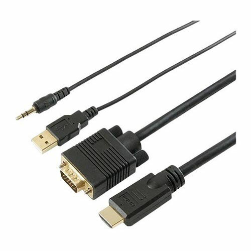 ●VGAからHDMIに簡単変換ICチップ内蔵により、機器同士を本ケーブルで接続するだけでアナログ信号をデジタル信号へ変換し、HDMI端子搭載機器に出力が可能です。●オーディオケーブル付属付属のオーディオケーブルを接続すれば映像と音声を同時に伝送できます。●USBケーブル付属USBケーブルを接続して外部から電源供給することで安定した映像変換が可能です。●3重シールド●金メッキ端子●無鉛ハンダ・OFC電材使用●単方向信号設計のため、HDMIからVGAへの変換には対応しておりません。●コネクタ形状・HDMI標準コネクタ(タイプA/オス)-ミニD-Sub 15ピンコネクタ(オス)・USB Aコネクタ(オス)・3.5mmステレオミニプラグ●コネクタサイズ:HDMIタイプAオス/W20.2*H14.8*D54mm、ミニD-Sub 15ピンオス/W32.5*H16.5*D51.2mm●ケーブル長:2m●PE袋パッケージ●保証期間:1年間●最大解像度:1920x1080●生産国:中国●事業者向け商品です。リニューアルに伴い、パッケージ・内容等予告なく変更する場合がございます。予めご了承ください。広告文責:楽天グループ株式会社050-5212-8316