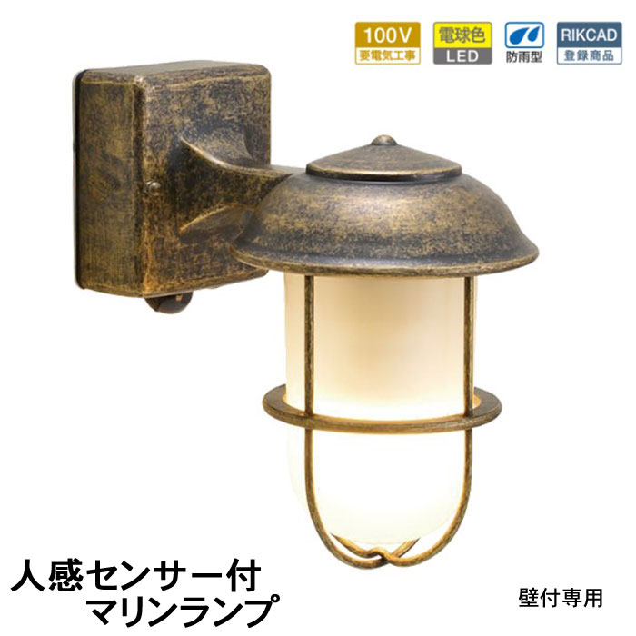 長い航海を照らし続けたマリンライト 今度は家族の歴史と言う航海を照らします。 家族の思い出の1つとしてマリンライトをあなたのライフスタイルに! ■人感センサー付きで機能性とデザイン性を兼ね備えたマリンライト 内臓されたセンサーは、ON-OFFモードとタイマーモードが選べます。 タイマーモードを設定すれば、夕方暗くなってから家族の帰宅時間帯までは明かりが灯り、 就寝する頃には人が近づいた時だけの点灯になります。 消し忘れの心配がなく、便利で省エネ、深夜の安全や防犯に役立ちます。 最新のLEDランプを採用した省エネ、長寿命仕様。 人感センサーの付いたマリンライトで限定色のグレーが シックでシャビーな雰囲気を演出 しっとりとしたぬくもりのある柔らかい灯りが印象的。 玄関照明 門柱灯 門灯 庭園灯 ガーデンライトにはマリンライトで素敵に演出! マリンライトは長く厳しい航海に耐えられる様に設計された照明で、 その堅牢さのデザインから人生の荒波を超える様にと祈りを込める様にり、 自宅の玄関照明や門柱灯・門灯にとその活躍の場を広げていきました。 庭造りやガーデニングにも用いられ、ウッドデッキにも使われています。 住む人の心情を込めやすい照明デザインが日々の暮らしを照らしてくれます。 人感センサー付きで機能性とデザイン性を兼ね備えたブラケットマリンライト 内臓されたセンサーは、ON-OFFモードとタイマーモードが選べます。 タイマーモードを設定すれば、夕方暗くなってから家族の帰宅時間帯までは明かりが灯り、 就寝する頃には人が近づいた時だけの点灯になります。 消し忘れの心配がなく、便利で省エネ、深夜の安全や防犯に役立ちます。 ■防雨型(直接雨のかかるところでもOK。もちろん室内での使用も可能。) ■くもりガラス:しっとりした光が特長 ■LEDランプ:白熱電球の雰囲気を残しながらも省エネ、長寿命仕様となるものを採用。 電球型 LED(電球色)/消費電力:5W 口金:E26 電圧:AC100V ■壁付照明 ■サイズ(mm):幅136×高さ204×奥行203 ■材 質:真鍮 ■色:古色 / 真鍮古色仕上げ 古色仕上げ: 馴染みやすい落ち着いたカラーとマットな質感がトレンドに流されない普遍的な和みをもたらしてくれます。 お手入れ方法: 無垢材の真鍮素材に古色調の塗装を何層も重ね、それを剥ぎ取ることで完成する仕上げ。 艶消しの古美色で独特な風合いです。 お手入れは乾拭き程度で、汚れは薄めた中性洗剤などを付けた柔らかい布で拭き取ってください。 ■重 量(kg):約2.4kg ■付属品:LED電球(E26 5W)、取付用ビス ■生産国:本体部品は台湾製、組立検査は日本国内 基準取得状況1:PSE 750628 ■納期:3日程度 ※土日祝日は除きます。 ※欠品時は30?60日程度かかる場合がございます。 予めご了承ください。 【商品についての注意点】 この商品の施工には、電気工事士の資格が必要となります。 同梱されている取扱い説明書と共に専門業者に依頼してください。 電球と取付ビスは付属しています。 【注意事項】 湿度が高い状態が続くとガラスセード内に結露が発生する場合があります。 点灯することで自然に乾燥する程度の結露は仕様上、問題ありません。 外気を吸い込むことにより、ガラス内部へ水滴が付く(結露)場合があります。 点灯時に乾いてしまう程度の結露は使用上問題ありませんが、 結露を防止するために施工時に取付面へのコーキング処理を行う必要があります。 ガラスセードは手作りの為、稀にごく小さい気泡が入る場合がございます。 これらはガラス特有の性質によるものですので、予めご承知おきください。 【補足事項】 付属のLEDランプはホタルスイッチ等のオフライト付きの壁スイッチを使用した場合、 不点灯や点滅等の不具合が発生する場合があります。 その際は、お客様でお使いの壁スイッチに適合するLED電球に交換をお願い致します。 また、LEDランプの交換が困難な照明器具の場合は壁スイッチをオフライトなしのタイプに交換対応をお願いいたします。 ■価格には施工費が含まれておりません。 エストアガーデンは商品の販売のみ行っております。 ■実際の商品と写真は異なる場合があります。 ■商品や納期に関するお問合わせ先: エストアガーデン TEL:042-313-6503 類似商品はこちらセンサーライト 屋外 防犯 防雨 人感センサー59,290円センサーライト 屋外 防犯 防雨 人感センサー50,820円センサーライト 屋外 防犯 防雨 人感センサー56,760円センサーライト 屋外 防犯 防雨 人感センサー58,080円センサーライト 屋外 防犯 防雨 人感センサー59,620円センサーライト 屋外 防犯 防雨 人感センサー51,920円センサーライト 屋外 防犯 防雨 人感センサー50,380円センサーライト 屋外 防犯 防雨 人感センサー48,950円センサーライト 屋外 防犯 防雨 人感センサー43,989円新着商品はこちら2025/12/22カッター 替刃式 オルファー OLFA オルフ275円2025/12/22カッター 替刃式 オルファー OLFA オルフ275円2025/12/22カッター 替刃式 オルファー OLFA オルフ682円