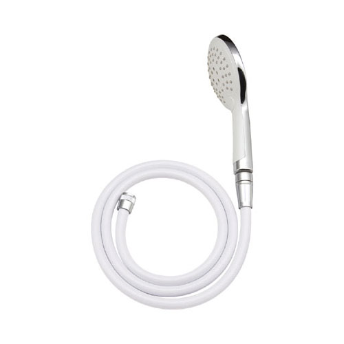 カラー:ホワイト 材質:ABS、PVC、黄銅 ●水流切替:リング操作でマッサージ・シャワー、ボタン操作でシャワー・一時止水 ●器具破損防止のため、完全止水しません。 ●低水圧(低流量)対応用シャワーヘッド 動水圧0.05MPa、流量5L/分の条件で使用できます。 ●アダプター付き ●吐水穴外周φ39ミリ ●ホース長さ1.6m PS39-CTA-WW