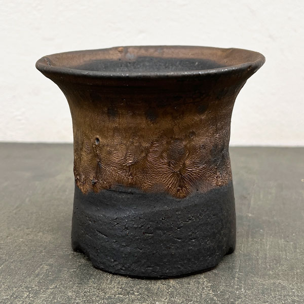山野草・ミニ盆栽に 多肉植物・塊根植物にも 穴あり 鉢信楽焼き:金彩ラッパ型 3号(直径約10cm)日本六古窯のひとつ、信楽焼(しがらきやき)の鉢。重厚感のある黒色の器地に、華やかな金彩が施された美しい逸品です。底穴が大きく排水性にすぐれるため、山野草やミニ盆栽、苔などの植え付けにぴったり。個性のある多肉植物や塊根植物(コーデックス)を植え込むのにもおすすめです。手づくり品のため、ひとつひとつの形や色合いが異なるのも魅力です。ぜひ唯一無二の1鉢を仕立ててみてください。サイズ(約)直径10cm、高さ9cm材質陶器製(国産品)その他底穴あり※手作り品のため、多少のサイズ違い、色むらがあります。※写真はイメージです。