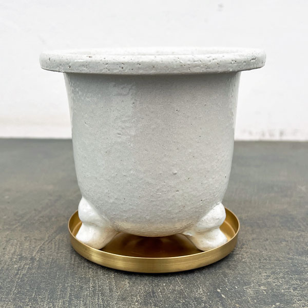 京楽焼鉢 富貴蘭鉢 万年青・蘭・山野草に 多肉植物・塊根植物にも人気RAKU プランター 白 K-95(直径約12.5cm)・受け皿付き京都発祥で、現在は三河地方で焼かれている京楽焼の植木鉢「RAKU PLANTER」。こちらは富貴蘭鉢の形です。底穴が大きく、荒い素焼きの陶器の上へ釉薬を塗って仕上げてあり、通気性・排水性にすぐれています。鉢を限りなく薄く削ることによって、軽く、断熱性も備え、鉢内がムレにくくなっています。蘭や万年青、山野草の育成に最適ですが、多肉植物や塊根植物(コーデックス)にも相性抜群です!軽くて丈夫な真鍮製の受け皿付き。サイズ(約)直径12.5cm(内径9.5cm)、高さ11cm鉢の材質陶器製(国産品)底穴ありその他真鍮製の受皿(インド製)付き※手作り品のため、多少のサイズ違い、色むらがあります。※写真はイメージです。
