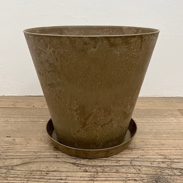 底面吸水鉢 直植え10号用 8号用鉢カバーアートストーン ラウンド ベージュ32cm(直径32cm)とソーサーのセット新世代コンテナ「アートストーン」。軽量で貯水機能性に優れているだけでなく、原料に有害物質を一切使用していません。環境に優しく、安心してご使用いただけます。石の粉を混ぜ合わせてできた高級な質感。優れたデザインと機能性を兼ね備えています。セット内容:・アートストーン ラウンド ベージュ32cm(直径32cm)× 1・アートストーン ラウンドソーサー ベージュ 26cm× 1★アートストーン ラウンド ベージュ32cmサイズ外寸直径32cm、高さ29cm、底面20cm サイズ内寸口径30cm、高さ25.5cm 土の容量約8リットル重量1.3kg材質ポリプロピレン・石色ベージュ 艶無形状円状★ソーサー ベージュ 26cm外寸直径25.5cm、高さ3.5cm 有効内寸直径22cm 材質ポリプロピレン・石色ベージュ 艶無使用方法:底部にはゴム栓のキャップがついていますが、通常使用時はゴム栓を外してご利用ください。植込みは通常の鉢と同様です。鉢底石を敷き、用土と一緒に植物を植え込んでください。鉢に水やりすると、水は底部のウォータープールにたまり、水やりコントロールシステムにより根が必要とする分だけ植物に供給されます。水をやりすぎても、余分な水は穴から排出されるので根腐れの心配はありません。室内などでご利用いただく場合、ゴム栓をしていただくこともできますが、簡易ゴム栓のため完全防水ではありませんので、そのような場合にはこのソーサーをお使いいただくと水漏れの心配がなくなります。