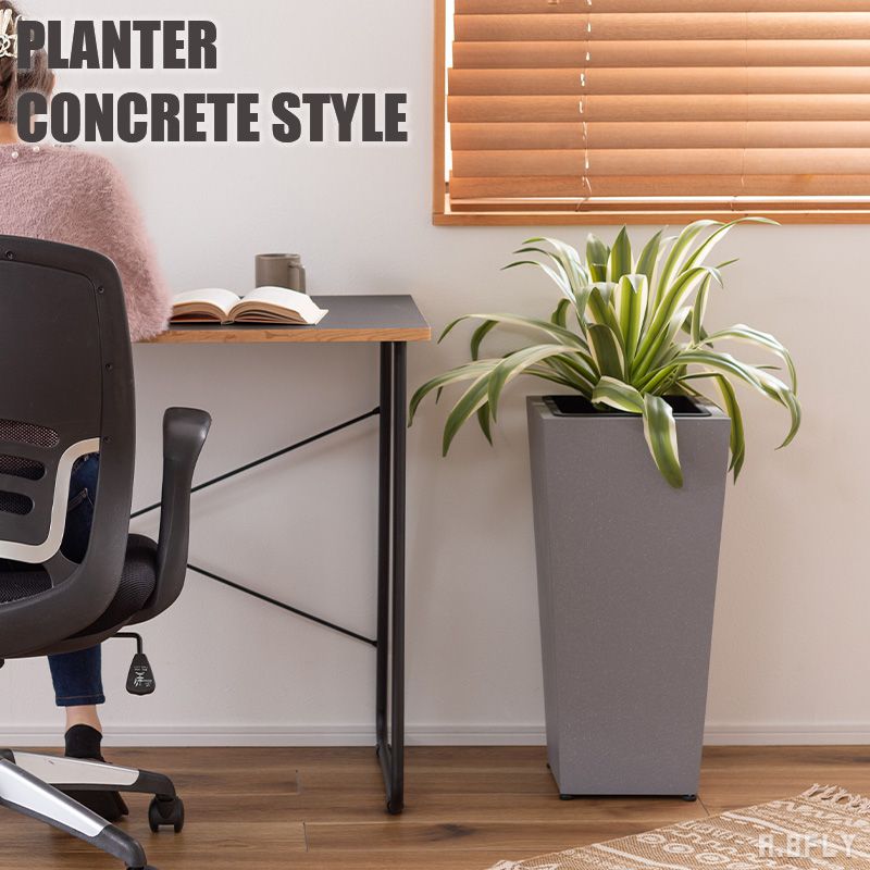 インテリアと一体化した植物を 鉢のまま入れるだけで、スタイリッシュになるプランター。 シンプルなデザインながら、お部屋の主役となるアイテムです。 こちらは6号用植木鉢に対応しております。 サイズ W28×D28×H55(cm) 素材 繊維板(セメント仕上) ポリプロピレン スチール(粉体塗装) 生産 ベトナム製 備考 完成品 ご注意 ※写真の家具、雑貨類は付属いたしません。プランター本体のみのお届けとなります。 ※商品の写真は、なるべく実物に近い状態になるよう努力しておりますが、光の具合やパソコンのモニターの種別、環境によっては、見え方が実際のものと多少異なって見える場合もございますので、ご了承ください。 ※品質改良のため、予告なく仕様やデザインが変更となる場合がございます。 SERIES LINEUP プランター ハイタイプ スタンド付き