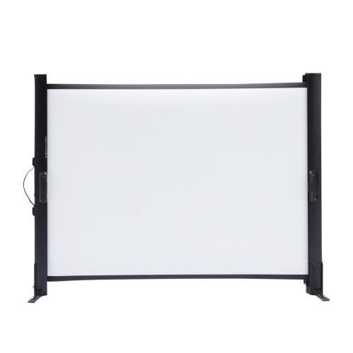 軽量で持ち運びも簡単なデスクの上に置いて使うモバイルスクリーン。 少人数の打ち合わせや会議に最適です。 脚を開き、スクリーンを真横に引き出すだけですぐに使えます。 スクリーンを畳み、脚を折り畳むだけで簡単に収納できます。 軽量、コンパクトで持ち運びに便利です。 サイズ(外寸):W960×D240×H725mm 収納時サイズ:W88×D79×H725mmスクリーン表示サイズ:W845×H610mm アスペクト比:4 対角線サイズ:40型相当 重量:2.3kg 材質:マット系