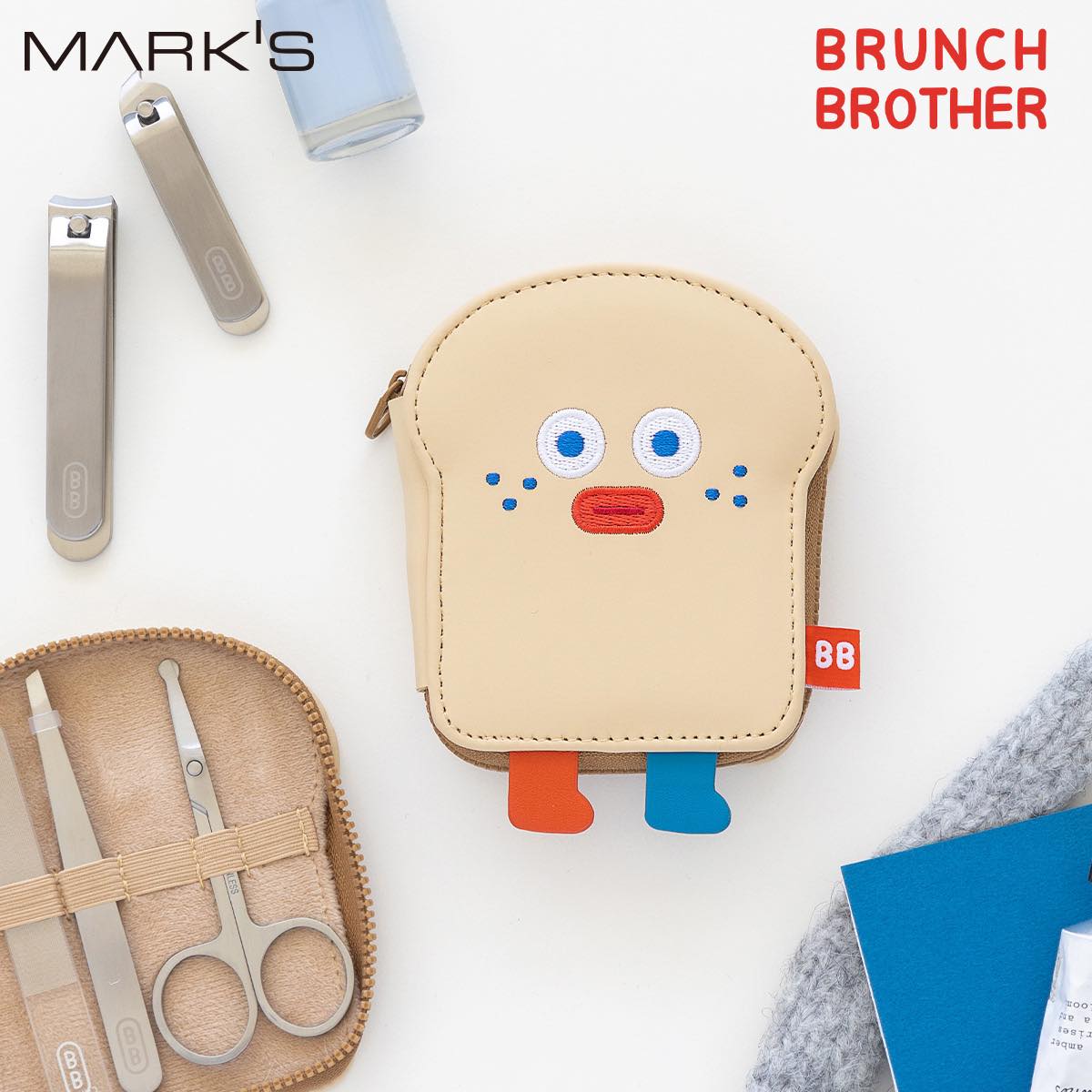日常に小さなときめきを添えてくれる、韓国発の人気キャラクター「ブランチブラザー」の、トーストの「ネイルケアセット」。 ころんとした形と、きょとんとした表情が愛らしいデザインです。手のひらサイズのケースは、持っているだけで気分がゆるみます。 ケースを開くと、つめ切りやハサミ、やすりなど、毎日の身だしなみに役立つアイテムをすっきり収納。 それぞれの道具が収まりやすい仕様で、使うたびに気持ちよく整えられます。 コンパクトなので、バッグに入れてもかさばりにくく、外出先や旅行先でも活躍します。 新生活の身だしなみアイテムとしてはもちろん、ちょっとしたギフトにもおすすめです。 毎日のケア時間に、そっと寄り添ってくれる「ネイルケアセット」です。 ◎サイズ/H125xW95xD25mm ◎重さ/約146g ◎素材/ステンレス・ガラス・PU・ポリエステル ◎仕様/セット内容:爪切り・斜爪切り・ネイルプッシャー・グラスネイルファイル・耳かき・毛抜き・美容はさみ インポート商品のため予告なくパッケージが変更される場合がございます。 お届けするパッケージのご指定は承れませんのであしからずご了承ください。 ●本来の用途以外には使用しないでください。 ●指などを切らないようご注意ください。 ●濡れたままで放置するとサビの原因となりますので、濡れた際はできるだけ早く乾いた布等で水分を拭き取ってください。 ●ペットや小さなお子様の手の届かない場所で使用・保管をしてください。 特集ページはこちら▼ ブランチブラザー一覧はこちら▼
