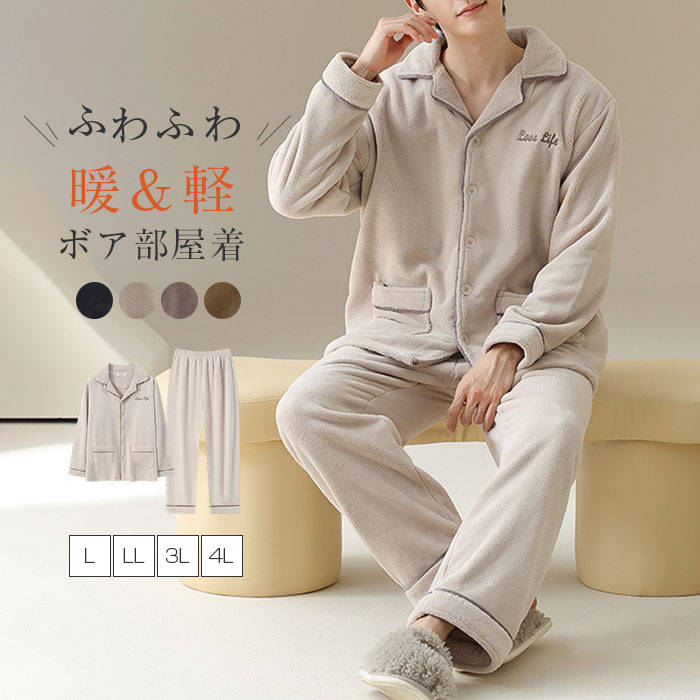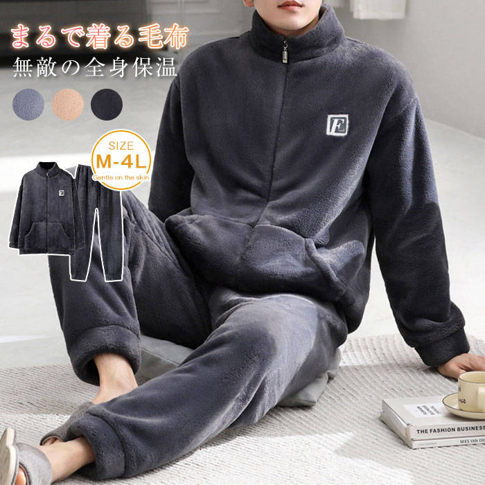 ・カテゴリ: パジャマ・スタイル: セットアップ、ライトスポーツ・主な素材: ポリエステル(サンゴフリース)95%以上・厚さ: 厚手・重さ: 約301-350g/m?・ネックライン: 襟付き・袖丈: 長袖・パンツ丈: 長ズボン・機能: リラックス、睡眠、ストレッチ、ルームウェア、保温・対象: メンズ・シーン: アウトドア、おうち時間・サイズ展開: L、XL、XXL、XXXL