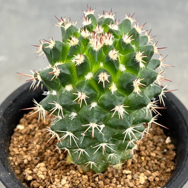 サボテンの仲間 現品販売 バイヤーセレクト観葉植物/[ザ・ファームセレクト]フェロカクタス:短刺巨鷲玉(無刺実生株) 3.5号鉢植え25-01★無刺が親の実生株です 徐々に刺がなくなりやすい株です★短刺巨鷲玉は刺が短いことにより、波打つ美しい稜がより際立ち、まるで工芸品のような美しさを感じられるサボテンの仲間です。フェロカクタスはアメリカ南西部からメキシコ原産のサボテンで、強い光を好みます。暑さ・寒さに強く比較的栽培しやすい品種です。独特の株姿が人気です。※刺の量、大きさには個体差があります。学名Ferocactus herreae horridus原産地中央アメリカ〜メキシコタイプサボテン科フェロカクタス属耐寒性5度まで日照直射日光は避ける育て方:風通しのよい場所で管理します。春と秋は表土が乾いたら鉢底から流れ出るぐらいたっぷりと水を与えます。夏は水やりの回数を減らし、夜間に湿らす程度で与えます。冬は断水気味で管理します。■ご注意・現品販売です。写真はお届けする株の画像ですが、植物は日々生育等により状態が変化するため、お届け時に株姿が若干異なる場合があります。・複数店舗で同時販売しているため、ご注文のタイミングにより、商品がお届けできなくなる場合があります。ご注文受付後に在庫確認を行い、改めてメールにてご連絡いたします。[ザ・ファームセレクト]フェロカクタス:短刺巨鷲玉(無刺実生株) 3.5号鉢植え25-01の栽培ガイド観葉植物の管理方法