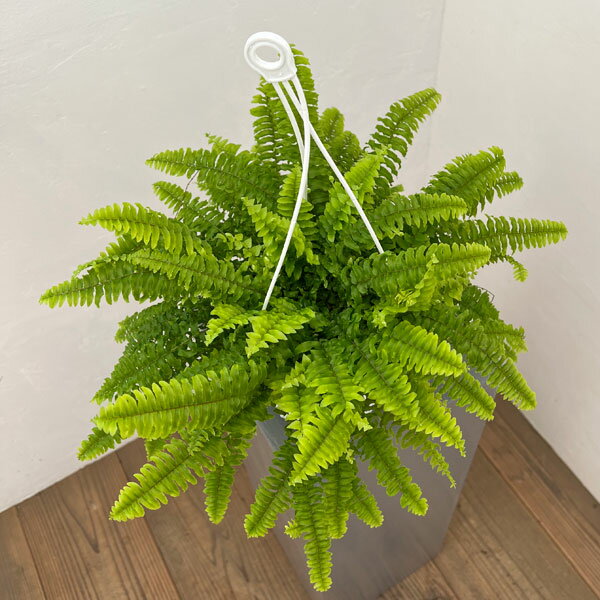 ツデージュニア・シダの仲間の観葉植物 寒さに強い観葉植物観葉植物/ネフロレピス:ツデー5号吊り鉢ツデーはタマシダ属の観葉植物で、コンパクトなタイプです。ツデーシダ、ツデージュニアなどとも呼ばれ、葉の長さは20〜30cmでコンパクトにまとまる株姿となります。涼し気な雰囲気で、春から夏のシェードガーデンやインドア観葉植物としておすすめ。明緑色の細長い葉を伸ばします。庭植えや、鉢植え、吊り鉢仕立てで、あるいは観葉の寄せ植えなどにも活躍します。★時期によりボリュームが異なります。冬季や苗の更新時期は少し小さめです。★学名Nephrolepis exaltata 'Teddy Junior'タイプツルシダ科タマシダ属の半常緑多年草耐寒性0度位まで草丈約70cm日照半日陰むき育て方:春から秋は明るい日陰においてください。乾燥に弱いので、水切れにご注意ください。5月〜10月は2ヶ月に1回程度緩効性肥料を根元に置き肥します。冬越しは室内に取り込み、レースのカーテン越しの日光程度の明るい場所に置きます。※写真はイメージです。ネフロレピス:ツデー5号吊り鉢の栽培ガイド日陰の庭におすすめのカラーリーフ観葉植物の管理方法