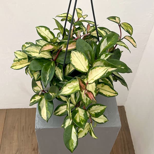 斑入りの肉厚葉が美しい観葉植物観葉植物/ホヤ:カルノーサ トリカラー 5号吊り鉢美しいトリカラーの葉を持つホヤ カルノーサトリカラーです。カルノーサは非常に育てやすいホヤです。サクラランとも呼ばれるホヤは、葉が肉厚のつる性の植物で、条件が整うと小さな星型の香り良い花を咲かせます。学名hoya carnosa 原産地インド、中国南部、ミャンマータイプガガイモ科ホヤ属の常緑蔓性植物耐寒温度5〜7度以上育て方:室内の明るい場所で管理して下さい。真夏の直射日光は葉焼けする場合がありますので、避けて下さい。やや多湿の土壌を好みます。育成期には月に1回程度液肥を与えて下さい。また、適度に葉水を与えて下さい。※写真はイメージです。 ■お届け地域につきまして・冬季は寒冷地や配送日数のかかる地域へのお届けができません。(概ね12〜3月、北海道、東北、沖縄、離島など)・但し個別の植物の耐寒温度により、お届け可能であればご相談させていただく場合があります。 ホヤ:カルノーサ トリカラー 5号吊り鉢の栽培ガイド観葉植物の管理方法インテリアにおすすめの、縁起の良い観葉植物