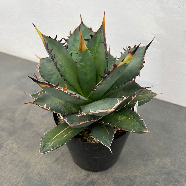リュウゼツラン 現品販売観葉植物/アガベ:チタノタ 5号25-01★現品販売★人気のアガベチタノタです。形の良い厳選個体です。アガベはメキシコ原産のアガベ(リュウゼツラン)です。肉厚で鋭いとげがとてもかっこいい逸品です。学名Agave titanota spp.タイプアガべ科(キジカクシ科)アガベ属の多肉植物越冬温度マイナス0度まで日照日向〜明るい半日陰管理方法:できるだけ日光に当てるとよく育ちます。室内、もしくは屋外の明るい場所で管理してください。水遣りは春〜秋は土の表面が乾いたら与え、冬は乾燥気味にします。春〜秋の生育期は緩効性化成肥料の置肥を2ヶ月に1回程度施します。冬季は室内で、窓越しに日光のあたる場所で管理してください。■ご注意・現品販売です。写真はお届けする株の画像ですが、植物は日々生育等により状態が変化するため、お届け時に株姿が若干異なる場合があります。・複数店舗で同時販売しているため、ご注文のタイミングにより、商品がお届けできなくなる場合があります。ご注文受付後に在庫確認を行い、改めてメールにてご連絡いたします。アガベ:チタノタ 5号25-01の栽培ガイド観葉植物の管理方法