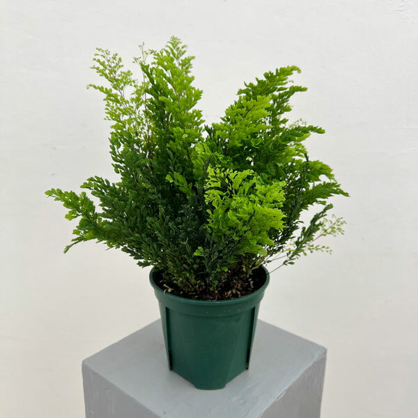 葉が細かく繊細な印象のシダの仲間観葉植物/アジアンタム:リサ 5号鉢植えアジアンタムは黒く光沢のある葉柄に、繊細な葉が爽やかなシダ植物です。リサは細かい葉が美しい品種です。学名Adiantum タイプワラビ科アジアンタム属原産アメリカ大陸を除く世界の熱帯・亜熱帯に分布日照半日陰〜日陰耐寒温度5度以上育て方:直射日光と乾燥を嫌います。弱光には耐えますが、乾燥には非常に弱く、空中湿度が高いところを好みますので、マメに霧吹きをして下さい。風通しの良い場所は不向きです。尚、用土は水はけのよいものを好みます。冬場は10度前後、最低でも5度程度の室温で管理して下さい。注:葉裏に胞子がついている場合があります。病気等ではありません。※写真はイメージです。 ■お届け地域につきまして・冬季は寒冷地や配送日数のかかる地域へのお届けができません。(概ね12〜3月、北海道、東北、沖縄、離島など)・但し個別の植物の耐寒温度により、お届け可能であればご相談させていただく場合があります。 アジアンタム:リサ 5号鉢植えの栽培ガイド日陰の庭におすすめのカラーリーフ観葉植物の管理方法