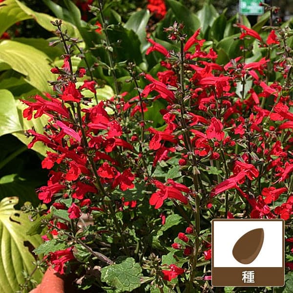 タネ・小袋 T&M社の種 春まき 耐寒性多年草サルビア(宿根サルビア):レッド ドワーフ宿根サルビアは、初夏から霜が降りるまでの間ガーデンを彩ってくれる宿根草です。鮮やかな赤い花がこんもりと咲き、コンテナに密に植えると目を引きます。種まき後の最初のシーズンから開花する、生育の早い品種です。他の耐寒性多年草に比べて若干寒さに弱いので、冬は根元に腐葉土を厚く敷くなど防寒してください。英名Salvia roemeriana 'Red Dwarf'タイプ耐寒性多年草種まき適期3-5月開花期7-9月草丈30cm場所日向・ボーダーやコンテナ、切り花向き容量約100粒栽培方法(一般的な種まきの方法です):育苗トレイやビニールポットに湿らせた種まき用の培養土を入れ、表面に種をまき、上から数ミリ培養土をかけます。発芽するまで乾燥させないように注意します。風通しの良い明るい日陰に置き、15-20度で管理すれば、2週間ほどで発芽します。発芽後も適温を保ちます。苗が大きくなったら9cmポットに移し、明るい場所で管理します。徐々に外気温に慣らしてから、花壇や鉢に植え替えてください。★検疫開封済の場合があります。予めご承知おきください。※育て方等の日本語訳は付属しておりません。※海外と日本では気候差から育ち方が変わることがあります。 全ての種子を一度に播種するのでは無く、少しずつ環境や条件を変えてお試し下さい。サルビア(宿根サルビア):レッド ドワーフの栽培ガイド種まきの方法:容器の選び方種まきの方法:色々なタネ
