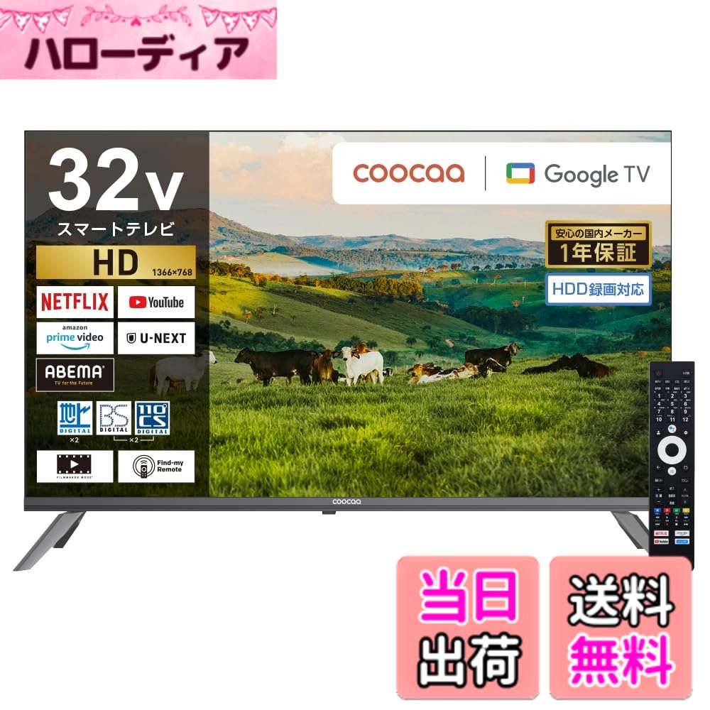 【送料無料】coocaa(クーカ) テレビ ブルーライト軽減 地デジ/BS/CSチューナー搭載 外付けHDD録画対応(裏番組録画対応) ドウシシャ サイズ:32V型