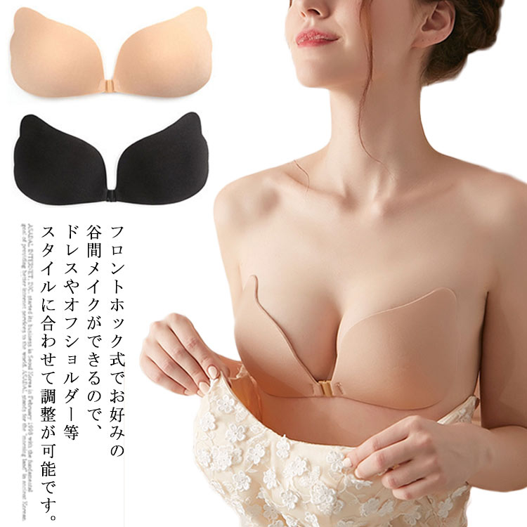 美しいバストをメイク!胸元が開いたドレスに最適なブラ。しっかり脇肉を寄せながら、自然なボリューム感です。水着にもパーティドレスにも きれいに谷間メイクができます。体に優しくて、ちょうどいい粘着力で、つけ心地がよいです。日常使いにはもちろん、結婚式、パーティーなど幅広いシーンでも大活躍です。 サイズA B C Dサイズについての説明A B C D素材ポリエステル シリコン色ブラック ベージュ備考注意★洗濯時、色落ちがございます。他の物とのお洗濯もお控えくださいませ。湿気を含んだ状態や水を含んだまま放置しないでください。この製品は洗濯で若干縮むことがあります。洗濯機は使用できません。※ベージュ×モカのみ使用糸の関係上、風合いが少々異なります。 ●綿混合商品は洗濯時に多少縮む事がございます。 ●本製品は生産過程におきまして、生地を織る際の糸の継ぎ目や多少のほつれが生じることがありまが、品質上は問題ありません。また、生地の織りに他繊維が混紡している場合もございます。▼色落ちの恐れがございますので、他のものとは分けて洗濯してください。▼タンブラー乾燥はお避け下さい。▼洗濯の際は他の物と区別して、漂白剤を避け、手洗いを お勧めします。