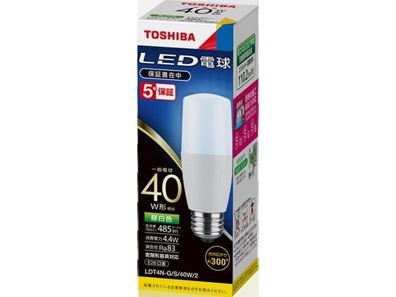 【商品説明】密閉器具対応、断熱材施工器具対応、約40000時間の定格寿命【仕様】●種別:一般電球形●光源色:昼白色●口金:E26●全光束:485lm●外形寸法:外径40mm×全長108mm●定格消費電力:4.4W●エネルギー消費効率110.2lm/W●光色5000K●40W相当●グリーン購入法適合●PSEマーク取得済み【備考】※メーカーの都合により、パッケージ・仕様等は予告なく変更になる場合がございます。【検索用キーワード】東芝 とうしば トウシバ TOSHIBA LED電球一般電球形 LEDでんきゅういっぱんでんきゅうがた LEDデンキュウイッパンデンキュウガタ E26 40W 40ワット 配光角約300度 配光角約300° はいこうかく300ど ハイコウカク300ド LDT4N−GS40W2 LDT4NGS40W2 昼白色 ちゅうはくしょく チュウハクショク 485lm 1個 40000時間の定格寿命 40000じかんのていかくじゅみょう 40000ジカンノテイカクジュミョウ 小型電球 小形電球 こがたでんきゅう コガタデンキュウ LED電球 小形電球(E17) RPUP_02 RJ2219光の広がり約300°