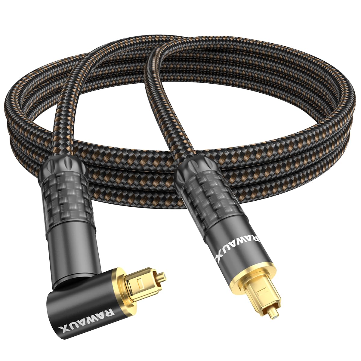 【送料無料】RAWAUX プレミアム 光ケーブル 24K金メッキデジタル光オーディオケーブル 編み込みナイロン トスリンク光ケーブルリード 光ファイバーケーブル サウンドバー テレビ ホームシアター Xbox DVDプレーヤー用 色:ブラック- 90度プラグ、サイズ:1M