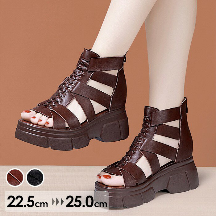 Hina Day Greenの代名詞・グラディエーターレザーサンダル。上質な本革を使い、日本の熟練職人が丁寧に仕上げた価値ある一足。厚底ソール&ふかふかのインソールで疲れにくく、7.5cmのヒールが美脚・スタイルアップ効果も期待できます!バックファスナー付きで着脱もカンタン♪ウエッジソール全体を本革で覆った贅沢な一足です。存在感のあるグラディエーターサンダルは、履くだけでワンランク上のコーデになります♪リピーター続出、Hina Day Greenのロングセラーを是非、お試し下さい♪厚底/履きやすい/歩きやすい/美脚/脚長/クッション性/安定感/カジュアル/シンプル/お出かけ/デート/パーティー/スカート/パンツ/セットアップ/ワンピース/フレア/シアー/ボリューム/タイト/旅行/通勤/通学/リゾートスタイル/日本製/本革/ウェッジソール★安心の日本製・上質な本革を贅沢に使用したサンダル。★存在感のあるデザイン。★バックファスナーで着脱カンタン!★厚底ソールで、美脚・脚長効果アップ♪※ATTENTION※◇天然皮革を使用しているため革の風合いや質感に個体差がございます。◇素材の特性上、多少の色ムラや擦れが見られる場合がございます。◇ハンドメイドによる生産過程で生じる多少のキズやシワがある場合がございます。予めご了承下さいませ。◇汗や雨などの湿気、摩擦などによって色落ちし、靴下などの衣服に着色する可能性がございます。お取り扱いには十分にご注意ください。◇商品画像の撮影は室内で行われているため、ライティングにより実物と色味が少し異なる場合がございます。◇商品のお気に入り登録がおすすめ! 再入荷などの通知を受け取ることができます。※本革(天然皮革)の商品について素材の特性上、多少のキズやシワ、色ムラや擦れが見られる場合がございます。汗や雨などで濡れた場合、色移りする場合がございます。革の品質保持のため、できるだけ濡らさないようご注意下さい。M/23-23.5cm : 【重さ】299g / 【ヒール寸】7.5cm / 【プラットフォーム高さ】3.5cm / 【筒丈】21cm / 【筒周り】25cm別カラーはこちら! グレー(チャコール) ベージュ ホワイト ブラック カーキ ブルー(ライトブルー) ネイビー(ネイビープリント) ブラウン(ダークブラウン) ホワイト(アイボリー) レッド ベージュ(トープ) カーキ(ダークカーキ) ブラウン(グレージュ/トープ) イエロー