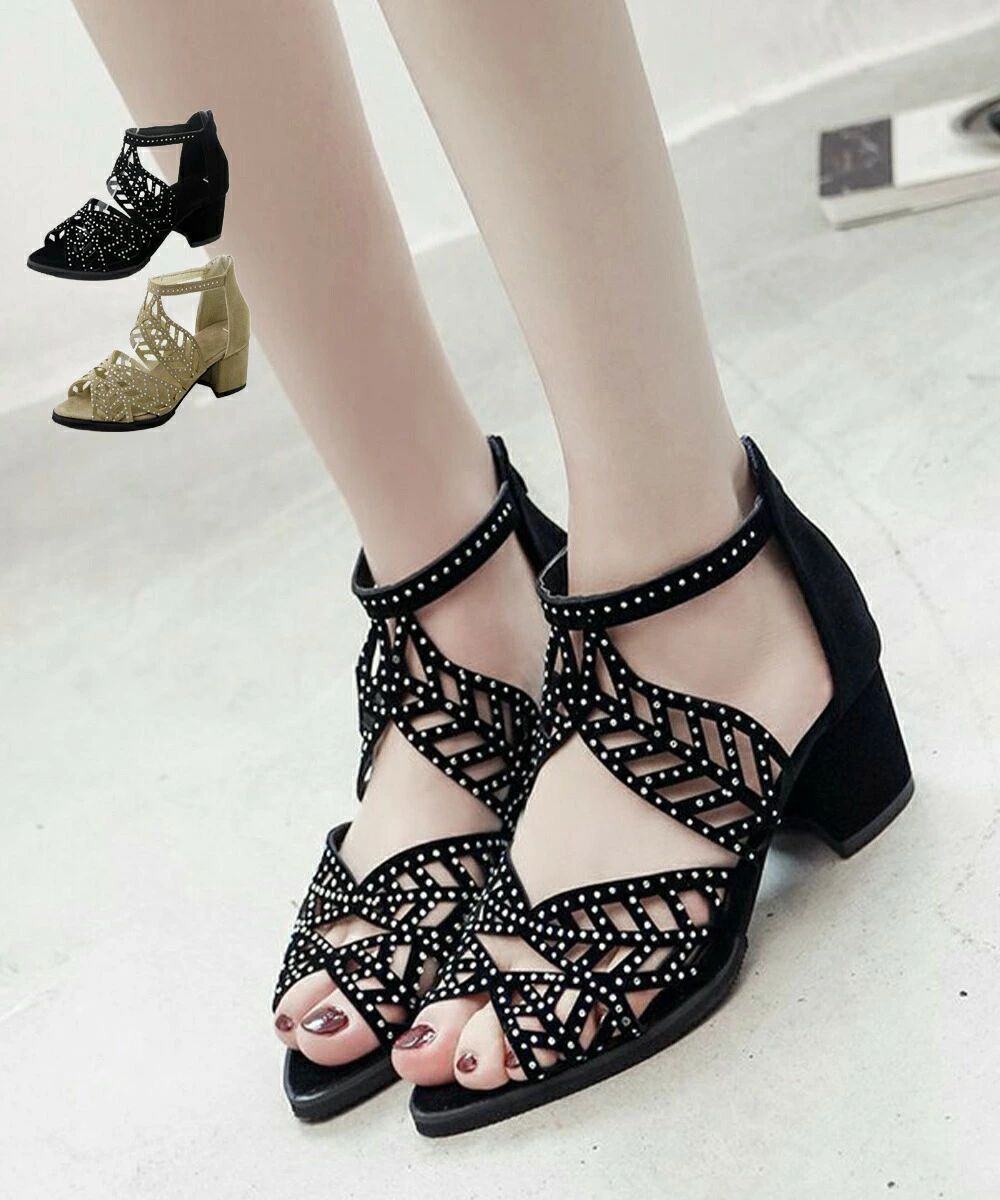 ■商品の特徴チャンキーヒールサンダル 歩きやすい バックジッパー 疲れない 太めヒール サマーブーツサンダル きれいめ キラキラ美脚アッパーにラインストーンが入っており、キラキラと華やかに足元を演出するチャンキーヒールサンダル。オープントゥのデザインは足先のネイルがチラ見えして、お洒落感が抜群で素敵な女性らしさを演出便利なバックジッパー付きで、着脱が簡単ブーツデザインなので、もちろんチュニックやミニ丈のボトムとも相性抜群■詳細説明甲素材:合成繊維底素材:合成底カラー:ブラック/ダークベージュサイズ:22.5cm(35)/23.0cm(36)/23.5cm(37)/24.0cm(38)/24.5cm(39)(カッコ内は靴底表記となります)[22.5]長さ:約22.5cm 幅:約7.8cm ヒール:約5.6cm[23.0]長さ:約23.0cm 幅:約7.9cm ヒール:約5.6cm[23.5]長さ:約23.5cm 幅:約8.0cm ヒール:約5.6cm[24.0]長さ:約24.0cm 幅:約8.1cm ヒール:約5.6cm[24.5]長さ:約24.5cm 幅:約8.2cm ヒール:約5.6cm重さ(両足):約488g-515g生産国:中国■その他説明※すべて平置きサイズです(採寸方法違いより、多少の誤差がございますので、ごください)。※海外輸入品のため、商品の細部仕様は多少異なる場合がございます。予めごの上、ご注文お願い致します。 メーカー希望小売価格はメーカーカタログに基づいて掲載しています