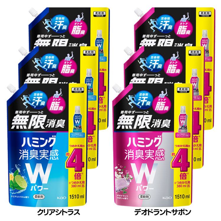 つめこみ洗いも、部屋干しも、無敵消臭!ハミング内NO.1抗菌*、生乾き臭・汗臭・靴下臭の3大悪臭菌に効く!*抗菌できる菌が複数あること。一部の菌は数回の洗たく。すべての菌の増殖を抑えるわけではありません。*23年4月現在・リフレッシュグリーンの香り:爽やかなシトラスグリーンとみずみずしいホワイトフローラルの香り・ローズ&フローラルの香り:ベリーをアクセントにした華やかなローズ調の香り・ホワイトソープの香り:香り控えめ、やわらかいムスクに包まれた石けんの香り・オレンジ&フラワーの香り:爽やかなオレンジと清潔感あるお花の香り※リニューアルに伴い、パッケージ・内容等予告なく変更する場合がございます。予めご了承ください。●セット内容:1.51L(つめかえ用)×3個●商品サイズ(1個あたり/cm):幅約20×奥行約12×高さ約31.5●成分:界面活性剤(エステル型ジアルキルアンモニウム塩)、安定化剤、香料●使用上の注意・応急処置:パッケージ裏面もしくは花王公式サイトをよくご確認の上、ご使用下さい。●原産国:日本(検索用:柔軟仕上げ剤 花王 無敵消臭 詰め替え 超特大 ソフナー 部屋干し 抗菌 悪臭菌に効く ふんわりやわらか まとめ買い 4901301433589 4901301431332 4901301431325 4901301431318) 最強翌日配送対象商品に関するご案内 最強翌日配送対象商品・対象地域に該当する場合は最強翌日配送マークがご注文カゴ近くに表示されます。 最強翌日配送可能なお支払方法は【クレジットカード、代金引換、全額ポイント支払い】のみとなります。 下記の場合は最強翌日配送対象外となります。 ・15点以上ご購入いただいた場合 ・時間指定がある場合 ・ご注文時備考欄にご記入がある場合 ・決済処理にお時間を頂戴する場合 ・郵便番号や住所に誤りがある場合 ・最強翌日配送対象外の商品とご一緒にご注文いただいた場合 ・お届け先住所文字数が40文字以上の場合 関連キーワード(本商品の説明ではありません)母の日 父の日 敬老の日 こどもの日 クリスマス バレンタイン ホワイトデー ハロウィン お正月 成人の日 成人式 記念日 誕生日 卒業式 入学式 お歳暮 お中元 春 夏 秋 冬 梅雨 節分 ひな祭り 七夕 十五夜 初詣 年越し 夏祭り 花火大会 結婚祝い 内祝い 出産祝い 快気祝い 還暦祝い 古希 喜寿 傘寿 米寿 卒寿 白寿 百寿 新築祝い 引っ越し祝い 開店祝い 開業祝い 就職祝い 昇進祝い 合格祝い 銀婚式 金婚式 七五三 長寿祝い 御礼 お母さん お父さん 義母 義父 祖父 祖母 おばあちゃん おじいちゃん 娘 息子 彼氏 彼女 恋人 友達 上司 先輩 後輩 同僚 キッズ 子供 幼児 ベビー 赤ちゃん 育児 学生 社会人 シニア 10代 20代 30代 40代 50代 60代 70代 80代 90代 一人暮らし 単身赴任 主婦 主夫 新生活 家族暮らし 子育て 旅行 トラベル ライブ ホームパーティ ビジネス 法人 ギフト プレゼント香りでもリラックス♪ お届け先が沖縄・離島の場合、お届け日時のご希望に沿えない場合がございます。予めご了承ください。 ご注文前のよくある質問についてご確認下さい[ FAQ ]