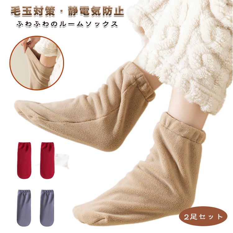 【ふわふわのルームソックス】抜群な保温性のフリース素材で作り、軽く、暖かく、扱いやすいフリースルームソックスは秋冬の部屋内として人気を集めているファッションアイテムです。男性・女性どちらも履いて頂けるシンプルなデザイン。【保温力性の高い両面フリース素材】ふわふわとした高密度両面フリースをを使用しているので暖かく寒い冬にぴったりのルームソックスとなっております。両面フリース靴下は熱を逃がさない、温まった空気をたっぷり抱え込んでしっかり保温し、履き口から冷たい空気が入り込みにくく、足全体を温かく包み込んでいます。薄すぎず、厚すぎ無い生地はごわつかず軽量で柔らかな肌触り。寒い冬にぴったりの靴下です。【柔い肌触り、まるで裸足の着け心地】両面フリースパジャマは触れた瞬間に感じる格別なふんわり感、柔らかな肌触り、靴下の履き口からつま先まで全部ふわふわとして、まるで暖かい雲に包まれているようです。ソックスの履き口には弾力ゴムを採用しました。それにより、足首のしめつけはなく、よく伸びる素材で窮屈感なくゆったりとした履き心地です。一度履いたら脱ぎたくなくなる暖かいソックス!モコモコでとても快適。【毛玉対策・静電気防止】毛玉が発生しにくいようにアンチピリング加工も施しています。静電気が起きやすいフリースだからこそ、特別な静電気防止加工でビリビリを回避。フカフカの素材は可愛らしく、保温性もあり、家での着用に最適です。【睡眠用・屋内用に最適】もこもこクッションのように衝撃を吸収し、両足をやさしく包み込んでくれてゆったりと履き心地で一日中快適です。この靴下は睡眠、お家でゆったりリラックスタイムにピッタリします。寝る時に足全体を優しく包み込んでくれるから、足先から足首までぽかぽかになります。快適な睡眠のお手伝いをしてくれる秋冬の必需品です。寒い冬もこのソックスがあれば、暖かくて快適にお過ごしいただけます。 サイズ 2足セット サイズについての説明 サイズ:フリーサイズ※サイズ計測には誤差が生じます。 素材 ポリエステル ポリウレタン 色 ホワイト ピンク ベージュ グレイグリーン レッド ダークグレー ブラック 備考 ●サイズ詳細等の測り方はスタッフ間で統一、徹底はしておりますが、実寸は商品によって若干の誤差(1cm〜3cm )がある場合がございますので、予めご了承ください。 ●商品の色は、撮影時の光や、お客様のモニターの色具合などにより、実際の商品と異なる場合がございます。あらかじめ、ご了承ください。 ●製品によっては、生地の特性上、洗濯時に縮む場合がございますので洗濯時はご注意下さいませ。 ▼色味の強い製品によっては他の衣類などに色移りする場合もございますので、速やかに(脱水、乾燥等)するようにお願いいたします。 ▼生地によっては摩擦や汗、雨などで濡れた時は、他の製品に移染する恐れがございますので、着用の際はご注意下さい。 ▼生地の特性上、やや匂いが強く感じられるものもございます。数日のご使用や陰干しなどで気になる匂いはほとんど感じられなくなります。
