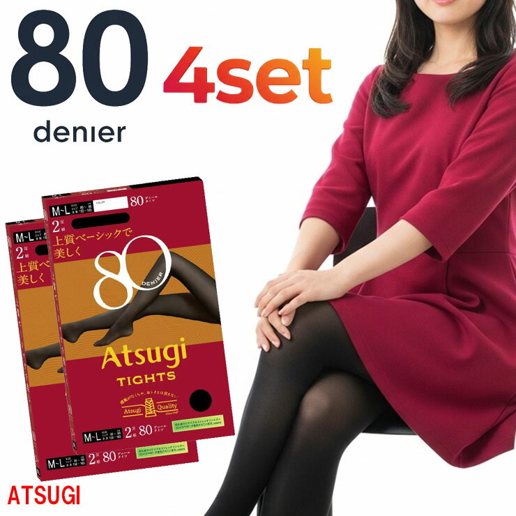 ■商品名 タイツ レディース New アツギ タイツ 80デニール FP80002P 4足組 ■特徴 ? ATSUGI TIGHTS/アツギタイツ ? 糸から考えるアツギだけのクオリティ。 やわらかく、暖かい。清潔さを兼ね備えたプレーンタイツ。 ECOと快適なはき心地を兼ね備えたベーシックタイツ。 毛玉ができにくく、肌ざわりはなめらか。 ヒップもピッタリフィット。 ソフトウエスト仕様で伸びやすくやわらかいタイツ。 気温10?15℃くらいの日におすすめです。 ●洗い替えに便利な4足組 ●80デニール 深みのあるリッチな中厚手生地の80デニール。 ほぼ透け感がなく防寒性が高くなるので、寒い時期に重宝する定番アイテムです。 ●蓄熱加工 太陽の光の中に含まれる近赤外線を生地のセラミックが吸収し、熱エネルギーに変換して素早く身体をあたためます。 ●毛玉ができにくい ●肌ざわりなめらか ●ソフトウエスト ●ヒップピッタリフィット ●静電気防止加工 ●抗菌防臭加工 ●ヌードトウ ●バックマーク付き ■サイズ S-M(ヒップ:80-93cm、身長:145-160cm) M-L(ヒップ:85-98cm、身長:150-165cm) L-LL(ヒップ:90-103cm、身長:155-170cm) ■素材 ナイロン、ポリウレタン ■配送 こちらの商品はポスト投函の場合、送料無料でお届けします。 ■ご注意 ※ポスト投函でお届けの場合、日時指定はご利用いただけません。 ※合計2セットまではポスト投函でお届けいたします。 ※PC・スマートフォンのメール設定により、当店からのメールが届かない場合がございます。迷惑メール設定・受信設定等をご確認ください。 ※画面上と実物では多少色具合が異なって見える場合もございます。ご了承ください。