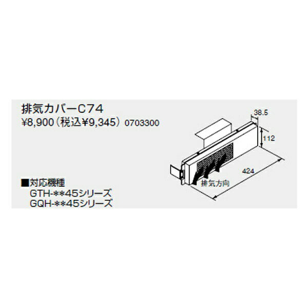【0703300】ノーリツ 排気カバーC74 【NORITZ】※品番にて注文をさせていただきます。メーカーにて品番の確認をお願いいたします。画像はイメージです。●対応機種:GTH-**45シリーズGQH-**45シリーズ※排気方向を逆にする事もできます。