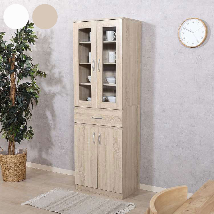 ■商品内容これ1台ですっきり片付くキッチンボード■商品スペック■商品名:ミドルキッチンキャビネット ホワイトオーク 組立品■サイズ(約):幅600×奥行290×高さ1200mm■重量(約):25kg■材質:○表面材:プリント紙化粧繊維板 ○構造部材:ガラス(扉部)/プラスティック(取っ手)■生産国:マレーシア■商品形態:組立品【ご注意事項】・この商品はお客様にて組立が必要な商品です。・商品の組み立て開始前に部材不足、破損がないか必ずご確認ください。・本商品は、北海道・沖縄・離島への配送はいたしかねます。あらかじめご了承ください。■送料・配送についての注意事項●本商品の出荷目安は【1 - 4営業日 ※土日・祝除く】となります。●お取り寄せ商品のため、稀にご注文入れ違い等により欠品・遅延となる場合がございます。●本商品は仕入元より配送となるため、北海道・沖縄・離島への配送はできません。