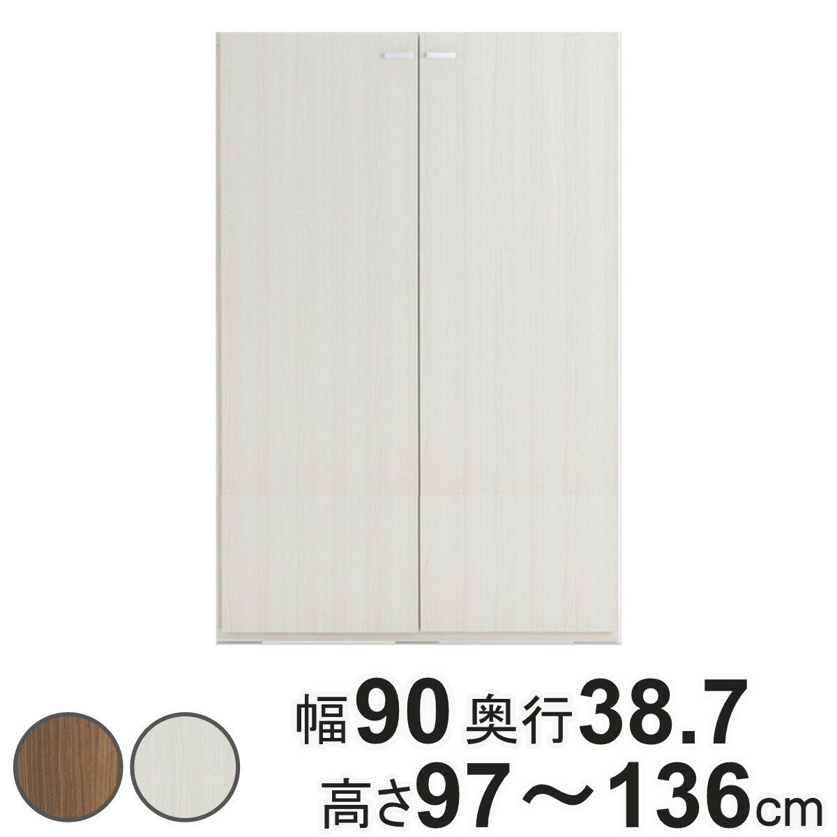サイズ約 幅90×奥行38.7(cm)約 高さ97〜136(cm)内容量1台付属品:可動棚2枚固定金具材質特殊プリント化粧板種類ホワイトウッド、ウォールナット生産国日本製組立状態完成品注意事項※各高さcm表記よりも実寸は2mm低くなります。備考ホルムアルデヒド放散区分:F☆☆☆☆区分返品・キャンセル区分(不可)●お好みの高さでオーダーができるリビングシェルフです。●最小76cm〜最大136cmまでの1cm単位で選ぶことができます。●便利な可動棚付きです。●巾木よけ加工付きなので壁にぴったり設置できます。おすすめポイント※こちらは高さ97cm〜136cmのオーダーページです高さ76cm〜136cmまで1cm単位でオーダー幅は最小で76cm、最大136cmまでのオーダーが可能です。1cm単位で選べるので、置きたい場所にピッタリサイズのシェルフが実現します。商品詳細便利な可動式の棚板付き棚板は3cmピッチで可動できる棚板付きです。また、奥行きが約35cmあるのでゆったり収納できる十分な収納スペースが作れます。【高さオーダー時】高さ96cm以下:固定棚1枚+可動棚1枚高さ97cm以上:固定棚1枚+可動棚2枚組替え自在のシステムファニチャーライフスタイルに合わせて組み替えが出来るシステム家具です。家具を逆さまにしても連結できるように、上専用下専用の区別がありません。壁にぴったり設置できる巾木よけ巾木よけ加工が施されているので、幅木のある壁にぴったり設置でき隙間なく美しく設置することが可能です。【加工サイズ:奥行1cm×高さ10cm】カラーサイズサイズ違い60幅高さ76〜96cm60幅高さ97〜136cm74幅高さ76〜96cm74幅高さ97〜136cm90幅高さ76〜96cm90幅高さ97〜136cm関連キーワード:システム収納 食器棚 マガジンラック 壁面 多目的ラック 約 幅90 奥行39 cm センチ 白 茶 モダン ホワイトインテリア 韓国風 韓国インテリア 淡色 カフェ風 什器 店舗 ショップ サロン 美容室 美容院 見せる収納 寝室 子ども部屋 子供 インテリア 雑貨 小物 整理棚 北欧 ナチュラル おしゃれ お洒落 オシャレ かわいい 可愛い カワイイ LH12336 LH12073 関連商品はこちら壁面収納 高さオーダー リビングシェルフ 日本49,280円壁面収納 高さオーダー リビングシェルフ 鍵付76,780円壁面収納 高さオーダー リビングシェルフ 扉付49,800円壁面収納 高さオーダー リビングシェルフ 扉付54,800円壁面収納 高さオーダー リビングシェルフ 鍵付64,680円壁面収納 高さオーダー リビングシェルフ 日本41,580円壁面収納 高さオーダー リビングシェルフ 日本43,780円壁面収納 高さオーダー リビングシェルフ 鍵付73,480円壁面収納 高さオーダー リビングシェルフ 扉付49,800円壁面収納 高さオーダー リビングシェルフ 鍵付64,680円壁面収納 高さオーダー リビングシェルフ 日本40,480円壁面収納 高さオーダー リビングシェルフ 扉付39,800円