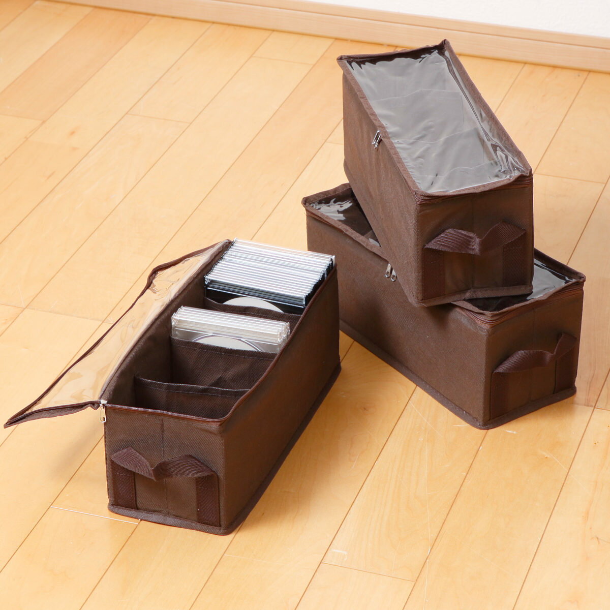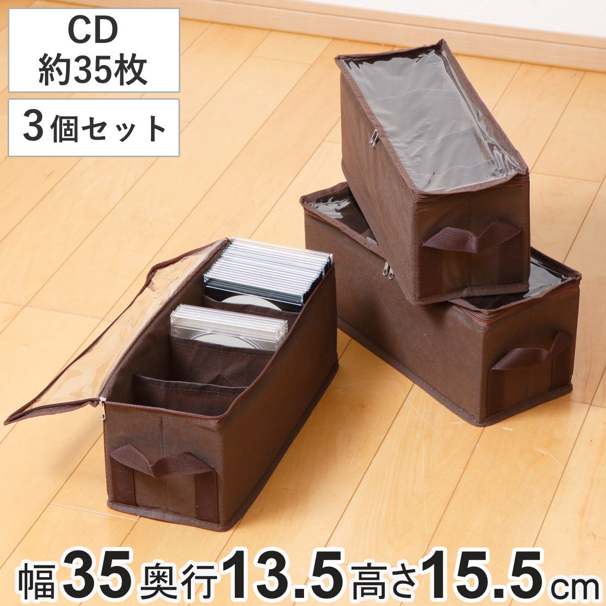 サイズ約 幅35×奥行13.5×高さ15.5(cm)重量約 270g内容量3個セット材質本体:不織布(ポリプロピレン)窓:ポリ塩化ビニル樹脂芯材:紙生産国ベトナム製耐荷重約 5kg注意事項※商品ページ内には別の商品を含む画像を使用しています備考1個あたりの収納量目安:CD 約35枚区分返品・キャンセル区分(小型商品)ギフトラッピングページを見る収納ボックス CDサイズ 幅35×奥行13.5×高さ15.5cm メディア収納 布製 3個セットおすすめポイント※商品ページ内には別の商品を含む画像を使用しています軽量で扱いやすい布製メディア収納ボックス 【CDサイズ】CDをケースごとすっきり収納できる、仕切り付きの不織布ボックスです。通気性の良い軽量素材を使用しており、扱いやすく普段使いにもぴったり。コンパクトなサイズ感で、ベッド下や棚上などのデッドスペース活用にもおすすめです。フタを開けずに中身を確認できる透明窓付きフタ部分には透明窓を採用。ボックスを開けなくても背表紙や中身がひと目で確認できます。複数並べても迷わず探せて、整理や分類がしやすいのも魅力。収納物を見つける手間を減らし、毎日の使いやすさを高めます。メディア収納だけでなく、衣類や小物整理にも便利メディア収納はもちろん、衣類の小分け収納にも活躍します。Tシャツや下着・肌着の整理、靴下・ベルト・ハンカチなどのファッション小物の仕分けにもおすすめ。フタ付きでホコリが入りにくく、透明窓は衣替えや季節の整理にも便利です。使わないときはコンパクトに折りたたんですき間に収納折りたたみ式だから、使わないときはコンパクトに。クローゼットや棚のすき間などにも省スペースで収まり、保管時も場所を取りません。シリーズで揃えて統一感のある収納空間にメディア収納ボックスは全6サイズ展開。収納物に合わせてぴったりのサイズを選べます。同じシリーズで揃えることで、オープンラックに並べても見た目が整い、すっきりとした統一感のある収納がつくれます。商品詳細【CDサイズ】収納量目安:CD 約35枚底板付きでしっかり丈夫、長く使える仕様厚紙の底板1枚が付属。底面ポケットに差し込むことでボックスが補強され、型崩れしにくく安定感がアップ。しっかり丈夫なつくりで、長く快適にお使いいただけます。倒れにくく整理しやすい仕切り付きメディアが倒れないよう、ボックス内には3枚の仕切りが付いています。スペースを分けて整理できるため、種類ごとの分類や整理整頓がよりスムーズに行えます。開閉しやすいダブルファスナー仕様開け閉めしやすいダブルファスナー設計。フタを大きく開けられるので、収納物の出し入れもスムーズです。取り出しや持ち運びに便利な持ち手付き両サイドには持ち手が付いています。棚からの取り出しや持ち運びの際にも手に取りやすく、使い勝手の良い仕様です。サイズ全てのサイズを見る布製メディア収納ボックス関連キーワード:持ち手付き メディア収納ケース ストッカー PS1 プレイステーション プレステ 衣類 衣類収納 子供服 下着 靴下 くつ下 ミニタオル タオルハンカチ ハンカチ コンパクト 折りたたみ 茶色 ブラウン 使いやすい 便利 おすすめ人気 ケース ボックス ダブルファスナー コレクション 整理 整頓 片付け 仕切り付き 約35枚 折り畳み 整理整頓 セット まとめて まとめ買い LH19892 関連商品はこちら収納ボックス CDサイズ 幅35×奥行13.5878円収納ボックス DVDサイズ 幅30×奥行20×2,190円収納ボックス 新書サイズ 幅35×奥行18.5878円収納ボックス メディア収納 布製 CD DVD788円?収納ボックス 新書サイズ 幅35×奥行18.52,190円収納ボックス DVDサイズ 幅30×奥行20×878円収納ボックス 文庫本サイズ 幅35×奥行16×2,190円収納ボックス 青年コミックサイズ 幅35×奥行2,190円収納ボックス 文庫本サイズ 幅35×奥行16×788円CD収納ケース いれと庫 CD用 18個セット15,800円CD収納ケース いれと庫 CD用 1,280円CD収納ケース いれと庫 CD用 ライト 1812,280円