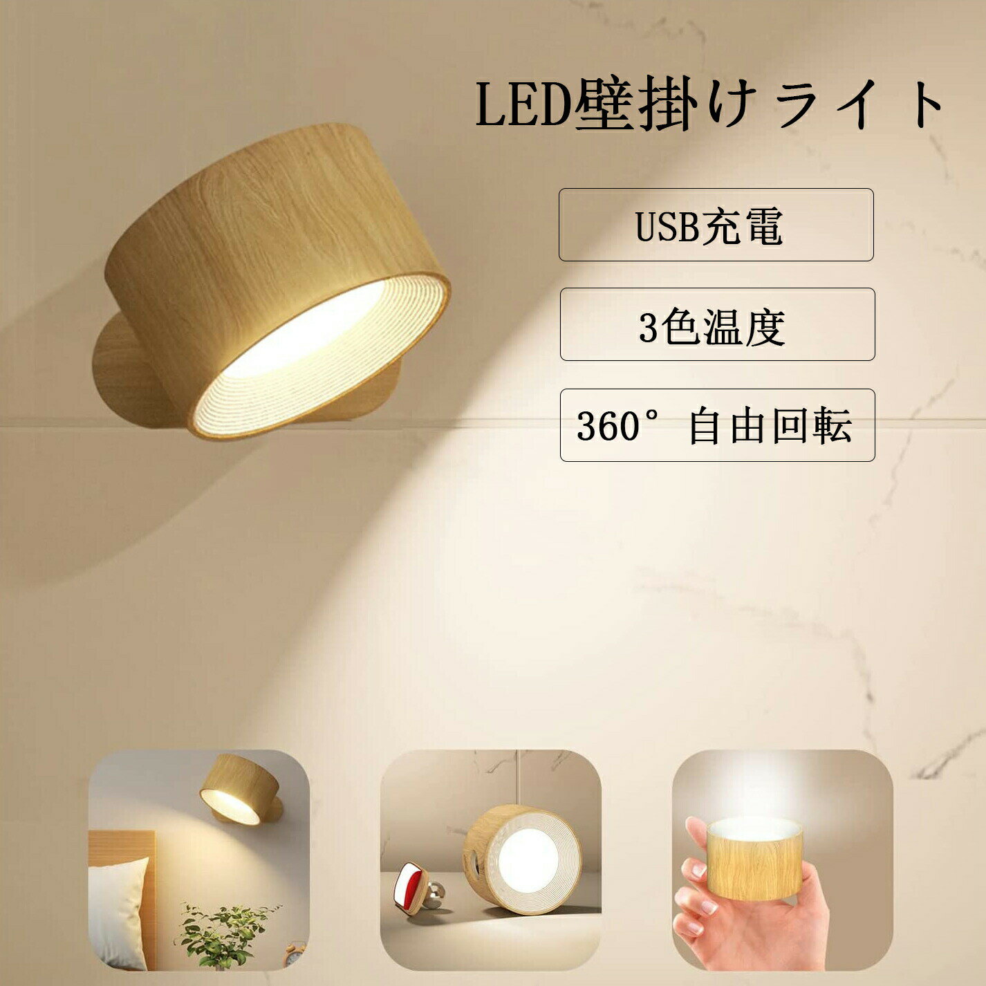 商品情報 製品名称 LED壁掛けライト カラー ホワイト、ブラック、木目 サイズ 約750x750x450mm 重量 約120gリモコン付き:約260g バッテリー容量 2000mAh 充電時間 約3-4h 使用時間 約5-20h 1.メモリー機能付き。ライトが30秒以上点灯した後に短押しで電源オフすると、次回点灯時も同じ明るさで再開。 2.フリッカーなしのやさしい光。 3.ライト本体は磁気吸着で台座に固定され、360°回転して角度調整可能。 4.台座には3M強力粘着テープ付き。滑らかな表面に貼り付けるだけで、取り付け不要。簡単&便利! 5.USB充電式で配線不要。 6.充電中は赤色ランプ、満充電時は緑色ランプが点灯。 ご注意 この製品は初めて使用する際、まず手で押して点灯させ、その後リモコンで灯っている面に向かって操作してください。 もしリモコンで電気を消した場合、次回使用時にはリモコンでオン/オフを操作できます。もし手動で電気を消した場合、次回使用時は初回使用時と同様に、まず手で押して点灯させ、その後リモコンで操作してください。