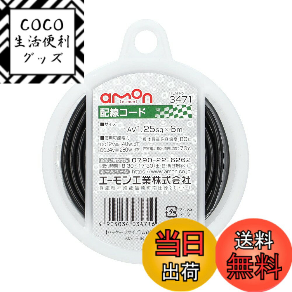【送料無料】エーモン(amon) 配線コード 0.2sq/0.5sq/0.75sq/1.25sq/2sq 赤・青・黄・黒 色:黒/6m/2021年、サイズ:1.25sqx6m/黒