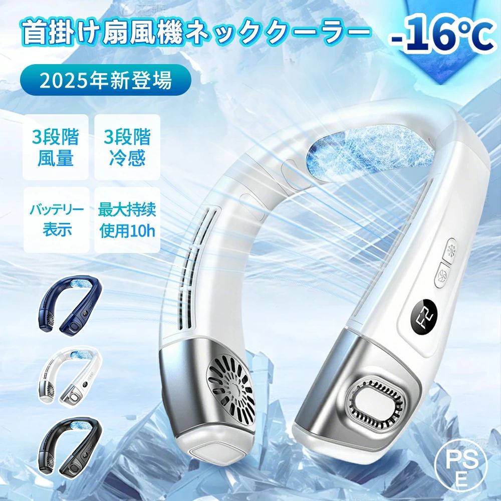 基本仕様 ●商品名:ネッククーラー ●型番 : S8 ●製品カラー:ブルー、ホワイト、ブラック ●本体重量:約250g 特徴 ■【720度上下送風】パワフルな風を3段階強力送風。 ■【長時間ワイヤレス】節電エアコンで、最大22時間稼働バッテリー。 ■【静音モーター】四つの高品質の立体的消音モーターで騒音を大幅に低減。 ■【3段階風力調整】空調の効いた室温に合わせて使用する事が出来る! ■【冷却プレート】主な機能は気温が高い時ベタつかずに使用するために、首元に冷感を与え、また首元の蒸れを防ぎます。1秒瞬間降温感じますが、長め冷たく感が続きません。冷却プレート自体が電気的に温度を下げている訳ではありませんので、予めご了承下さい。 注意事項 充電時には、※定格電源:DC5V 1A以外のものは使用しないでください。 メーカー希望小売価格はメーカーサイトに基づいて掲載しています。