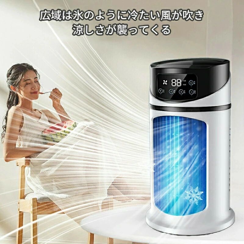 商品情報【多機能冷風機】送風、冷却加湿機能を揃えている冷風機小型ミニクーラーです。普通の扇風機より涼しく、噴霧機能を追加、水が超音波で加工され、繊細なミストになります。、エアコンほど寒くならないので日中でも快適に利用できます、子ども、女性やお年寄りなど、冷えに敏感な方におすすめします。 【3段階切替&自動首振り】風量及び噴霧量が3階段切替可能の卓上扇風機冷風扇です。弱・中・強三つの風量モードとミストモードがあり、自動首振りと吹き出しのミストを合わせ、ちょうどいいの涼しい夏を心地よく過ごせます。 【小型持ち運び便利・静音】小型のエアクーラー(ただし、デスクトップはオフィス、寝室、子供部屋に配置するのが適切です。コンパクトであるため、ドレッシングルームやエアコンのないキッチンなどの大きな空調場所に非常に適しています。 一人暮らしにも適しています!使用中は非常に静かで、寝ている間も安全に使用でき、妊婦、子供、高齢者が安全に使用できるクールなファンです。稼働音はほとんど聞こえない。仕事や就寝の時も邪魔にならない。いつでもどこでも活躍できる。