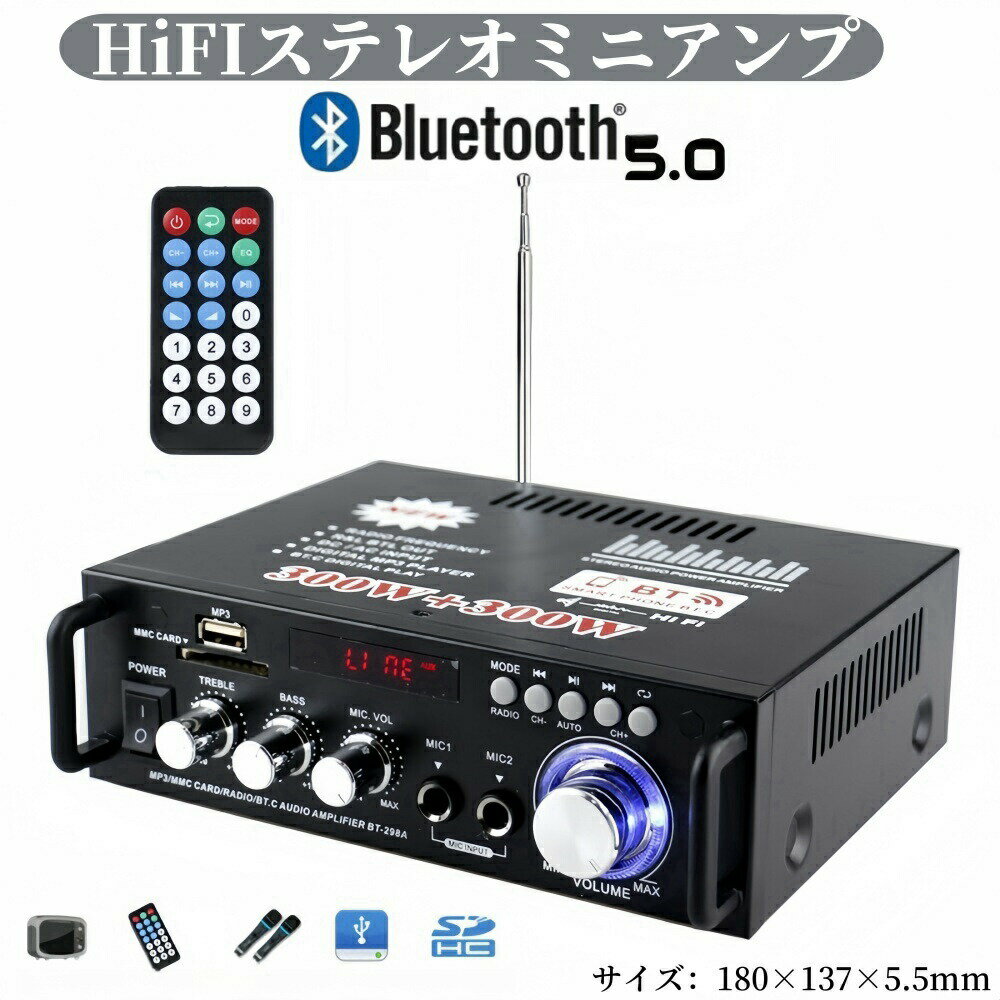 商品情報商品の説明主な仕様 Bluetooth5.0接続:Bluetooth5.0機能を備え、10メートル以内の受信範囲があります。スマートフォン、iPad、iPhone、コンピューターなどと接続しやすい。注:Bluetooth接続後、通話中のプライバシーを保護するため、再生は一時停止されますバランス制御:明確で応答性の高いボタンを備え、マイクの音量、バランス、低音、高音、主音量、入力ソース、トラックなどを調整できます。4-8Ωおよび最大50Wの4セットのスピーカーと接続できます複数入力モード:SDカード (最大16G)、USB (最大32G)、RCA入力、ECHOマイク入力およびその他のモードに接続することもできますbrFM機能&HDスクリーン:自動検索機能により、最大50のラジオ局を保存できます。一度検索するだけで使用できます。LEDディスプレイを備え、遠距離でオーディオ調整用のリモコンも含まれています。ご注意:安全性と高出力でプラがの緩みを防止するため、差込プラグをご用意しております。ご使用中、力を入れてプラグをソケットに挿入するか、変換プラグをご利用ください440ワット: Donner パワーアンプは、カラオケ、ホームシアター、音響システム、モニターヘッドフォンに最適です。4セットのスピーカーを適応でき、十分な強電力増幅を提供します。各スピーカーは個別に制御できます。サイズ:42.5cmx31cmx16.7cm ☆注:接続方法:アップ??ブックシェルフ型スピーカー