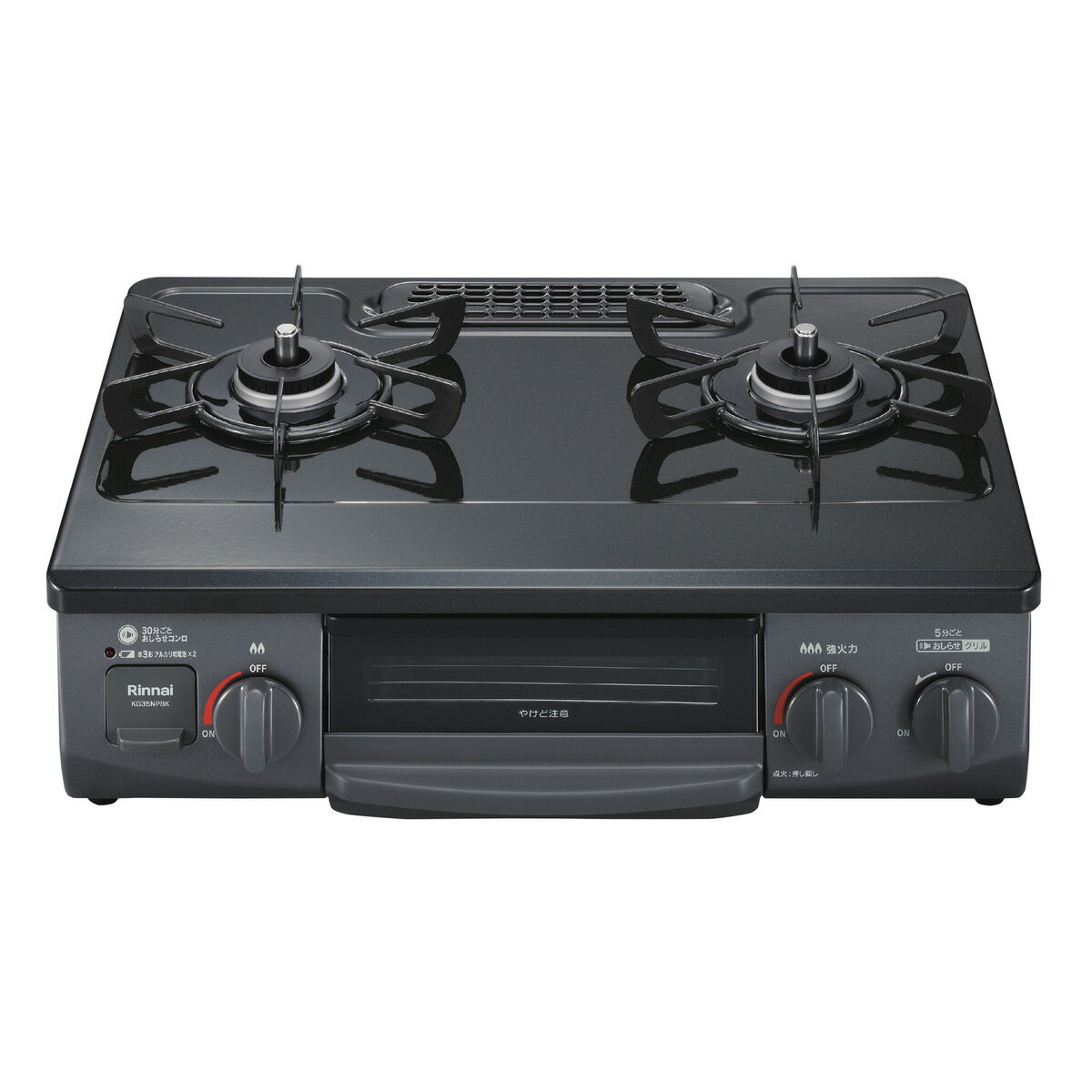 仕様 ガス種類:都市ガス用(12A・13A) ガス接続:9.5mmガス用ゴム管(別売) ガス消費量:全点火時8.60kW 電源:DC3V 単一形アルカリ乾電池×2 コンロ口数:2口 強バーナー位置:左 天板材質:ホーロー グリル:水なし両面焼き 色:ブラック 付属:ココットプレート 製品サイズ(mm) 幅×奥行×高さ:596×495×218 製品重量(g) 13500 商品説明 都市ガス用のコンロ付ガステーブル。 温度調節機能:160~210℃まで、10℃刻みでお好みの温度に自動調節します。 湯沸し機能:スイッチを押しておけばお湯が沸いたらお知らせして自動消火。保温時間の設定もできるので、ゆで卵などをつくる時にも便利。 コンロ調理タイマー:時計のマークを押して時間をセット。設定時間が経過したら自動で消火します。茹ですぎ、煮すぎを防ぐぎ、消し忘れ防止にも役立ちます。 炊飯機能:スイッチを押すだけで、手軽に直火炊きのご飯が味わえます。火力も消火も自動で、ふっくらおいしく炊きあげます。 グリル調理タイマー:お好みの時間に設定すれば、その時間で自動消火します。消し忘れ、焼きすぎの心配はいりません。 スムーズグリル:グリルがスムーズに引き出せるので、快適に調理できます。 コンロ点火確認表示:点火中はオレンジ色のサインがみえるので、火がついているかを一目で確認できます。 グリル過熱防止センサー:グリル庫内のセンサーによって温度を見張るから、安心。温度が異常に上がると自動消火し、発火を防止します。 グリル消し忘れ消火機能:両面焼は約15分で自動消火します。 ※品質向上のため予告なく仕様を変更する場合がございます。パッケージのリニューアル等につき、商品画像が異なる場合がございます。商品画像の色合いは、画像処理上、若干異なる場合がございます。