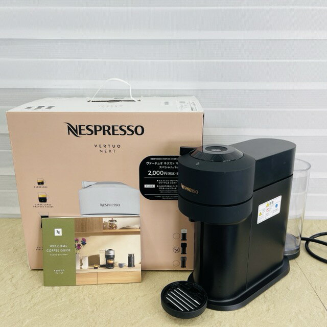 ネスプレッソ ヴァーチュオ ネクスト マットブラック コーヒーメーカー 【中古】動作保証 NESPRESSO VERTUO NEXT GDV1 コーヒーマシン/516103 商品詳細 製造番号: 25177DV1100617071Y4 サイズ(幅/奥行き/高さ): 約 14/42.9/31.8 cm 重量: 約4kg ※素人寸法です。若干の誤差はご了承下さい。 商品は写真にあるもので全てです。 必ず写真で確認お願い致します。他にもたくさん出品しています。 状態 状態ランク C 少しキズ、汚れがある 状態ランク表 SSS 新品未開封 SS 未使用品 S 展示品 A 使用感が全くなく綺麗 B 目立ったキズや汚れ無し C 少しキズ、汚れがある D キズや汚れがある E 目立ったキズ、汚れがある F 目立ったキズ、汚れが多くある G 破損個所がある H 破損個所が多くある 状態チェック担当者のコメント箱には黒ずみや小傷スレ、シール痕があります。多少のスレ傷汚れはありますが目立ったものはなく綺麗です。 スペシャルパックですがカプセルは付属しません。それ以外全て揃っております。 動作 動作ランク A 動作問題なし 動作ランク表 S 新品未開封 未使用 A 動作問題なし B 一部分のみ未チェック C 多少難有り D 通電のみ確認 E 難有り F 未チェック G ジャンク品 動作チェック担当者のコメント 動作確認済みです。商品到着後8日間の動作を保証いたします。 アプリの接続も確認しております。 支払詳細 ページ下部にてご確認ください。 発送詳細 ゆうパック120にて埼玉県より発送いたします。詳しくはこちらを御覧下さい。 ※現在発送できない地域について郵便局の窓口休止状況、ゆうパック等の引受引渡しが停止となっている地域については、日本郵便ホームページよりご確認ください。落札前に必ずご自身の地域が発送可能かご確認の上ご入札お願い致します。手渡しも歓迎です。※手渡しの場合、取り置きは落札日より1週間となります。予めご了承下さい。※送料無料の商品はご参考までにご覧下さい。 注意事項 ※タイトルの末尾は管理番号となります。※ジャンク品の商品は、故障や破損、欠品、動作未確認、 正常な動作のお約束ができない等、様々な理由にてジャンク品として販売をさせて頂いております。その為、商品の返品・返金・交換等の 対応は出来ません。修理、パーツ取りなどを想定しお買い求め下さい。 ※保証について動作保証と記載のある商品については、商品に不具合が生じた場合、商品到着後8日以内は返品、返金をお受けいたします。取付や工事が必要なものに関しましては、それに必要な費用は当方では負担致しません。 取付費、工事費は保証対象外となります。当方で販売いたしました商品が明確な原因で重大な事故へと発展いたしました場合にも、商品代金の2倍以上の責任は負いかねます。商品を利用される際には、必ず状態をご確認ください。 ※評価について恐れ入りますが当方から評価はしておりません。評価が必要な場合、受取連絡の際に取引ナビでご連絡下さい。よろしくお願い致します。 誠に勝手ながら各週日曜日が定休日となります。そのためご連絡、発送、手渡し対応等行っておりません。予めご了承の上ご落札をお願い致します。 同梱ご希望の場合は必ずお支払い前にご連絡をお願い致します。※ 新品及び未使用品は商品到着後8日間の動作を保証いたします。