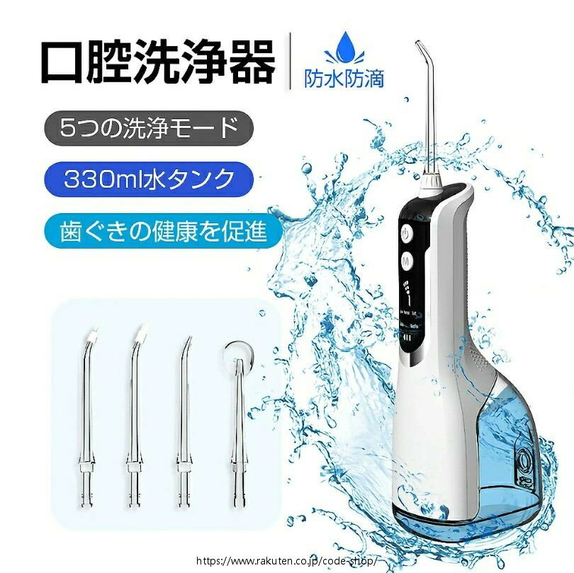 商品仕様 商品名:口腔洗浄器 型番:CYQ09 強化版動作モード:パルス/ソフト/ノーマル/パワー防水等級:IPX7水タンク容量:400ml充電時間:2-4時間 カラーバリエーション:ブラック/ホワイト定格出力:6W定格電圧:3.7V充電ポート:Type-C 梱包内容:標準ノズル ×3 舌苔用 ×1 歯ブラシ ×1 Type-C 充電ケーブル ×1 日本語取扱説明書 ×1 製品の優位性 【新技術で実現!歯茎に優しい徹底オーラルケア!】 ジェットウォッシャーは日本人の口腔ケアや生活環境を考え、歯科医と共同開発。「優しいのに高い洗浄力」を特徴とし、歯ぐきに負担をかけずにやさしくケアできる新技術を採用しています。汚れを落とすのに最適な毎分1400回-1800回/分のパルスジェット水流を発生し、ブラッシングでは取り切れない歯間や歯周ポケット内のの汚れや食べかす、歯垢までしっかり洗い流します。矯正器具やブリッジのまわりの汚れも強力に除去できます。さらに、断続的に脈動するパルスジェット水流が歯肉マッサージをしながら血行を促進し、歯と歯ぐきの健康を保ちます。忙しい日常の中でも、プロフェッショナルなオーラルケアを自宅で手軽に体験でき、輝く笑顔と自信あふれる毎日を実現します。 【ノズル5本付属・家族共用・交差感染防止】 ノズル5本付属、歯ブラシでは取り切れない歯間や歯周ポケットの汚れを徹底的に洗浄し、様々な口腔トラブルに対応します。革新的な歯垢除去ノズルは、単なる水流だけでなく、ブラッシング機能も同時に兼ね備えた独自の設計です。これにより、歯の隙間をきれいにするだけでなく、歯の表面にこびりついた頑固な歯垢を除去し、歯石の形成を効果的に防ぎます。また、ノズルが360度回転するため、口腔内の隅々までアプローチし、歯間の食べカスやプラーク汚れをスッキリ落とします。本体をどの方向に持っても使えるため、届きにくい場所まで洗浄できます! 【4段階の水圧調節、お好みの強さが選べる】 パルス/ソフト/ノーマル/パワーの4モードを搭載し、多彩な使用感を実現します。 ・ソフトモード:敏感な歯ぐきにやさしく、初心者に最適。 ・ノーマルモード:日常使いのバランスの取れた水圧。 ・パワーモード:頑固な汚れに強力アプローチ。 ・パルスモード:リズミカルな水流で歯ぐきをマッサージ。 使用後、舌で歯を触るとすべすべでザラつきゼロ。清潔感が癖になり、自然と毎日の習慣に。細かく調整できる水圧で歯間の汚れを的確に除去するため、「一度使うと手放せない」と多くのユーザーに支持されています! 【400ml大容量タンク ? IPX7クラスの防水機能を搭載!】 400mlの超大容量で洗浄途中で頻繁に水を補給する必要はありません。分離型の水タンクのため、手軽いにお手入れできます。ノズル/チューブも分解して洗浄できて、楽々に衛生状態を保てます。半透明水タンクで、水量が一目でわかります。IPX7クラスの防水機能を搭載しシャワーでもお風呂でも使えます。(※長時間に水に浸さないでください) 【大容量バッテリー搭載で最長60日間充電不要!】 1500mAhの大容量バッテリーは、コンセントがない場所でも使用できて、1回満充電すると、10-15週間も連続使用できます(毎日約2分間使用する場合)。場所を選ばずUSBで充電できて、家庭用だけでなく、短期出張や旅行などにも適しています。 人間工学に基づいた持ちやすいデザインの上に、幅7×高い24.1×奥行き8.4cmコンパクトなサイズで旅行や出張、どこにでも手軽に持ち運んで使用できます! メーカー希望小売価格はメーカーサイトに基づいて掲載しています商品仕様 商品名:口腔洗浄器 型番:CYQ09 強化版動作モード:パルス/ソフト/ノーマル/パワー防水等級:IPX7水タンク容量:400ml充電時間:2-4時間 カラーバリエーション:ブラック/ホワイト定格出力:6W定格電圧:3.7V充電ポート:Type-C 梱包内容:標準ノズル ×3 舌苔用 ×1 歯ブラシ ×1 Type-C 充電ケーブル ×1 日本語取扱説明書 ×1 製品の優位性 【新技術で実現!歯茎に優しい徹底オーラルケア!】 ジェットウォッシャーは日本人の口腔ケアや生活環境を考え、歯科医と共同開発。「優しいのに高い洗浄力」を特徴とし、歯ぐきに負担をかけずにやさしくケアできる新技術を採用しています。汚れを落とすのに最適な毎分1400回-1800回/分のパルスジェット水流を発生し、ブラッシングでは取り切れない歯間や歯周ポケット内のの汚れや食べかす、歯垢までしっかり洗い流します。矯正器具やブリッジのまわりの汚れも強力に除去できます。さらに、断続的に脈動するパルスジェット水流が歯肉マッサージをしながら血行を促進し、歯と歯ぐきの健康を保ちます。忙しい日常の中でも、プロフェッショナルなオーラルケアを自宅で手軽に体験でき、輝く笑顔と自信あふれる毎日を実現します。 【ノズル5本付属・家族共用・交差感染防止】 ノズル5本付属、歯ブラシでは取り切れない歯間や歯周ポケットの汚れを徹底的に洗浄し、様々な口腔トラブルに対応します。革新的な歯垢除去ノズルは、単なる水流だけでなく、ブラッシン