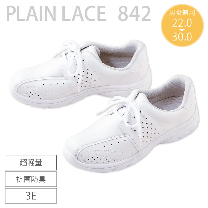 プレーンレース 842 商品の特長 抗菌・防臭シューズで、 足もとを快適にサポート。 シンプルでベーシックな デザインなので、毎日使いやすい。 超軽量で履き心地も抜群です。 素材等 アッパー:合成皮革 中敷き:カップインソール(抗菌・防臭加工) 底材:EVA ワイズ:3E ヒール:3.5cm 片足重量:180g(23.5cm) カラー ホワイト サイズ 22.0 ・ 22.5 ・ 23.0 ・ 23.5 24.0 ・ 24.5 ・ 25.0 ・ 25.0 25.5 ・ 26.0 ・ 26.5 ・ 27.0 27.5 ・ 28.0 ・ 29.0 ・ 30.0 ・モニター等の環境による色の誤差や、素材により色ブレが生じる場合があります。 ・表記サイズには若干の誤差が生じる場合があります。 ・ご注文のタイミングによって、商品が欠品している可能性があります。 ・運送会社の状況・災害時・繁忙期などにより配送が遅延する可能性があります。 ・土・日・祝は休業日となっております。発送までの日数には含まれませんのでご注意ください。FORK ナースシューズ 関連商品