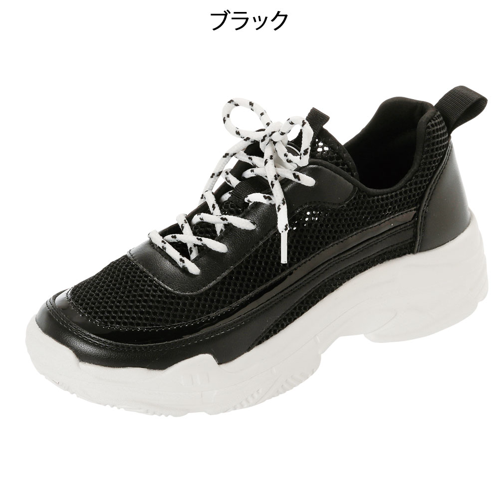 おすすめカテゴリ (1904)クールに決まるスタイルを足元に厚底ダッドスニーカーボリュームのあるソールがアクセントに。透けメッシュ仕様でムレにくいのがうれしい♪クールに決まるダッドスタイル。ムレにくい透けメッシュ。コーディネートのアクセントに。●適応サイズ(cm/約)[S]22〜22.5、[M]23〜23.5、[L]24〜24.5、[LL]25〜25.5●素材/アッパー:メッシュ・PU、底材:PVC●重量/約220g(片足Lサイズ)●ヒール高/約5cm●タイプ/3E相当【着用イメージ】【ポイント】ムレにくい透けメッシュ靴裏【カラー】
