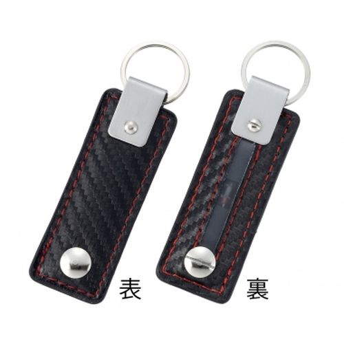 静電気除去を光って知らせるキーホルダー ●カーボン調レザーでスポーティ感アップ。 ●放電回路搭載で静電気除去効果アップ。 ●製品サイズ:H98xW29xD10mm。