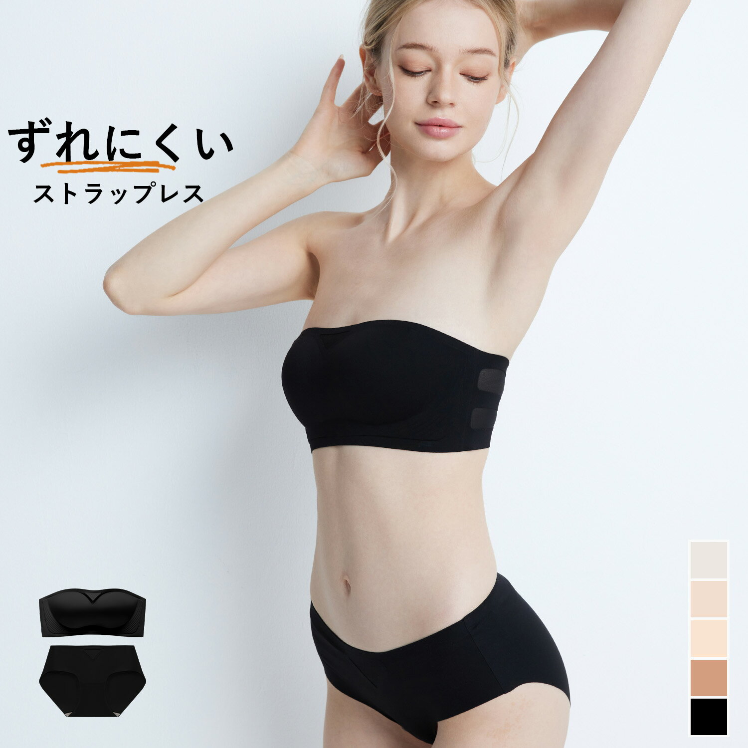 人気のカテゴリ ナイトブラカップ付きインナーブラジャー補正下着セクシーランジェリールームウェア■ おそろいアイテムも好評販売中 ■ ショーツ単品 ブラ単品 【 ご注意ください 】※肩紐なしでもずれ落ちないよう、アンダーのホールド力を高めた設計です。普段一番外側のホックで着用されている方は、アンダーを1つ上げカップを一つ下げた姉妹サイズもご検討下さい。(例:C70→B75) リブ素材のストラップレスブラはモードな雰囲気を醸しだす。無駄のない洗練されたデザインがボディラインに深みを与えてくれる。サイドホックで、背中見せファッションにもオススメ◎お揃いショーツは、伸縮性のありコンフォートな着け心地のフルバックショーツ。■「ズレない × 盛れる × ノンワイヤー」モーニングルーティンブラシリーズでも大人気の下厚ハンド型パッドを搭載。下と横からしっかりバスト持ち上げ谷間メイク。上下に滑り止めのシリコンゴムを採用でストラップレスでもズレずにしっかりホールドを実現。こんなの欲しかった!をカタチに。下着専門店が本気で作ったストラップレスブラ☆こんなお悩みのある方におすすめです・オフショルダーやドレスの時の下着に困っている・ストラップレスはとにかくズレるから嫌・盛れるストラップレスブラを探している・ワイヤーの窮屈感や痛いのが苦手・バストにボリュームが欲しい※こちらの商品は2025年2月にリニューアルいたしました。これ以前のレビューはリニューアル前の商品に対するものとなりますので、ご参考の際はご注意ください。※常に商品改良をおこなっており、ご購入いただくタイミングにより仕様や着用感・色味が若干異なる場合がございます。 ≫ ギフトラッピングはこちら ≪ ■ おそろいアイテムも好評販売中 ■ ショーツ単品 ブラ単品 セット内容 ブラ+ショーツ/ 計2点セット 取り扱いサイズ A70/ショーツMA75/ショーツMA75/ショーツLB65/ショーツMB70/ショーツMB75/ショーツMB75/ショーツLB80/ショーツLC65/ショーツMC70/ショーツMC75/ショーツMC75/ショーツLC80/ショーツLD65/ショーツMD70/ショーツMD75/ショーツMD75/ショーツLD80/ショーツLE65/ショーツME70/ショーツME70/ショーツLE75/ショーツLE80/ショーツLF65/ショーツMF70/ショーツMF70/ショーツLF75/ショーツL ※「ブラ/ショーツサイズ」となっております。上記以外の組み合わせはお選びいただけません。 仕様 付属品:ストラップ(1本) ストラップ取り外し:可 ストラップ長さ調節:可 パッド:あり(内蔵型) パッド取り外し:不可 ワイヤー:なし ホック:5段4列(サイドホック) モデル:165cm / D70 素材 コットン、ポリウレタン、その他 透け感 なし 注意事項 ※肩紐なしでもずれ落ちないよう、アンダーのホールド力を高めた設計です。普段一番外側のホックで着用されている方は、アンダーを1つ上げカップを一つ下げた姉妹サイズもご検討下さい。(例:C70→B75) ※キナリは若干の透け感がございます。 ※モニター環境により、色味が実際の商品と若干異なる場合がございます。 ※記載のセット内容のみの販売となり小物等は含まれません。 ※お洗濯の際は、洗濯表示(ケアラベル)の取扱い絵表示と注意事項をご確認ください。 関連ワード u364fsa ブラジャー ブラ ブラジャーセット ショーツ 上下セット ブラショーツ セットアップ ブラジャーショーツセット セット販売 下着セット 下着 インナー ランジェリー レディースインナー ストラップレス ストラップレスブラ ストラップなし ストラップ取り外し 肩紐なし チューブトップ カップ付 ノンワイヤー ワイヤーなし ワイヤーレス ホルターネックストラップ ホルターネック モールドカップ パッド内蔵型 可愛い かわいい おしゃれ オシャレ お洒落 ずり落ちない 落ちない ずれない ズレない ズレにくい ずれにくい 滑り止め キープ フィット ホールド 盛れる 盛りブラ 谷間 痛くない リラックス 食い込まない デコルテ 丸胸 美乳 オフショルダー オフショル 肌見せ 背中魅せ 背中見せ 肌見せ ヘルシー 谷間カバー チラ見せ 見えてもかわいい 見せブラ バックオープン 背中開き バックオープン シースルートップス シースルーシャツ クロップド レイヤード ドレス パーティ 二次会 結婚式 夏 リブ リブ素材 綿混 コットン サイドホック コーデ シリコン バンドゥブラ ベアトップ ブラック 黒 くろ black モノトーン グレー gray ぐれー キナリ オフホワイト white 大きいサイズ グラマーサイズ Eカップ以上 Eカップ Fカップ イーカップ エフカップ