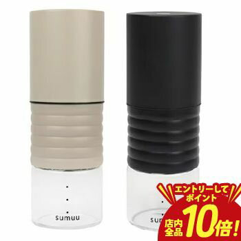 〜ご利用シーン・イベント〜 下記ご利用シーンやイベントなどでご使用することが可能です。 ※一部イベント等はご使用頂けない場合がございます。 お正月 初売り 初詣 お年玉 成人の日 成人式 節分 バレンタインデー 桃の節句(ひなまつり) ホワイトデー 春物入荷 お花見 入学式 ゴールデンウィーク 母の日 衣替え 父の日 梅雨 夏物入荷 山開き 海開き 七夕 お中元 暑中お見舞い 夏休み 花火大会 盆踊り 夏祭り 秋物入荷 防災 敬老の日 ハロウィン 運動会 文化祭 学園祭 お歳暮 冬物入荷 クリスマス プレゼント 贈物 贈り物 ギフト お返し 引っ越し祝い 新生活 お祝い 内祝い 出産祝い 引っ越し祝い 引越し祝い 引越祝い 新築祝い 成人祝い 卒業祝い 就職祝い 合格祝い 入園祝い 入学祝い 進学祝い 結婚祝い 婚約祝い 退院祝い ボーナス祝い 七五三祝い 退職祝い 還暦祝い 長寿祝い 誕生日 お誕生日 大掃除ITEM DETAILSブランド名sumuu(スムウ)商品名sumuu 電動コーヒーミル ラミル商品説明・いつでも挽きたての香り高いコーヒーを♪持ち運べて使い勝手抜群な「sumuu 電動コーヒーミル ラミル」が新登場。【扱いやすいシンプル設計】・グラインダーにコーヒー豆を入れて、電源スイッチを稼働。約1分半〜5分で簡単に豆を挽くことができて、忙しい朝なども手間いらず◎(※挽き時間はコーヒー豆約15gの場合)【お好みの挽き方に調節】・グラインダー横にある調節つまみを回して、細挽きから粗挽きまで自在。お好みの粗さに調節できて、こだわりの1杯に♪(※時計回り:細挽き、反時計回り:粗挽き)【3杯分まとめて作れるサイズ】・挽いた粉は最大約45gまで粉受けビンに溜めることができ、カップ3杯分の粉をまとめて作ることが可能。約15gごとの目盛り付き。(※豆の挽き方により、目盛りに誤差が生じる場合があります。)【どこでも使えるUSB充電式】・付属の専用USBコードを使用する充電式。自宅はもちろんオフィスやアウトドアシーンなど、いつでもどこでも使えて便利!面倒な電池交換も不要。(※約2〜3時間満充電で約20〜30分稼働。豆の種類や挽き方、使用環境などにより異なります。)【お手入れラクラク】・本体は分解でき、グラインダーと粉受けビンは水洗いOK。いつも清潔をキープ。【誰でも使いやすいカラーバリエーション】・マットな質感&落ち着きのあるカラー。お気に入りをチョイスして♪素材PP、ABS、ガラス、ステンレス生産国中国サイズ[縦]約20.5cm/[直径]約7cm※サイズはメーカー公表サイズです。実際の商品とは多少の誤差が生じる場合がございます。あらかじめご了承ください。重量約595g(※商品一式の重量です。)耐熱・耐冷効力・耐熱温度[ガラス部分]100度注意点[付属品]保証書、USBコード x 1本※お取り扱いの際は、商品やパッケージなどに記載されている品質表示、アテンションタグ、ご使用上の注意事項などを必ずご確認下さい。※本来の目的以外にはご使用にならないで下さい。※カメラやモニターの性質により、画像と実物の色の違いがある場合がございますのでご理解願います。