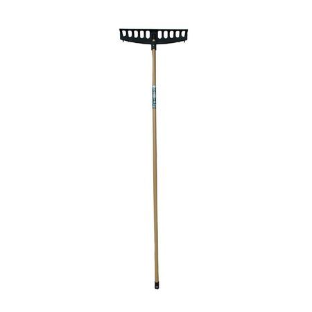 【特長】●頭部は丸型です。【用途】●清掃、整地作業。●グラウンドなどのならし作業。【仕様】●全長(mm):1590●先幅(mm):500●爪長さ(mm):145●高さ(mm):120【仕様2】●板厚:1.45mm【材質/仕上】●頭部:スチール●柄:天然木