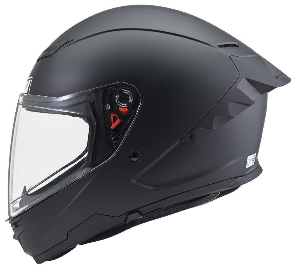 ■属性ヘルメット SGマーク: ○ヘルメット PSCマーク: ○■商品概要カラー:マットブラック高強度帽体 ABS+PCSG規格【PSマークの種類】PSC【届け出事業者名】株式会社デイトナ【登録検査機関名称】一般財団法人製品安全協会■詳細説明ライダーの安全を最優先に考えたデイトナオリジナルヘルメットシリーズ。ABS+PC複合素材の高強度帽体が高い安全性を発揮。ピンロックや高性能ベンチレーション、脱着可能な内装など、機能と価格のバランスが高次元で実現したヘルメットです。【DN-001RS】リアスポイラーとインナーバイザーを装備した、抜群の空力と広い視界が特長のスポーティモデル。大型のリアスポイラーは、空力に優れルックスもスポーティーに。UVカット加工のインナーバイザー付きで、必要に応じて眩しさを回避し視界を良好に。左側面のレーバーにより開閉可能。ピンロック社製のピンロックシートが1 枚付属。高い曇り止め効果を発揮します。エアベンチレーションは、口元、上部2か所のインテークと後方のアウトレットで高い通気性を確保。肉厚なスピーカーでも耳が痛くならないスピーカーホールを装備。シールド開口部は上下左右の視界が広く手元が見やすい広域視界設計。走行風の巻き込みを防ぐ、チンカーテンを標準装備。あごひもはD リング仕様。しっかりと締める事ができ万一の事故時にヘルメットが外れにくく安全です。内装は全て取り外して洗えるので、清潔に使用できます。●大型リアスポイラーを装備したスポーツタイプのバイク用フルフェイスヘルメット●ABS+PC複合素材の高強度帽体で安全性が高く、SG規格を取得●装備されたインナーバイザーは片手で簡単に開閉可能。ライディング中の視界確保に●万一の事故時にヘルメットが外れにくい安全なDリング仕様のあごひも●標準装備:PINLOCKシート(曇らないシールド)/スピーカーホール(肉厚なスピーカーにも対応)■注意点※帽体が共通であっても、内装変更によるサイズ調整はできません。※メーカー都合により商品の仕様変更がある場合がございます。ご了承ください。